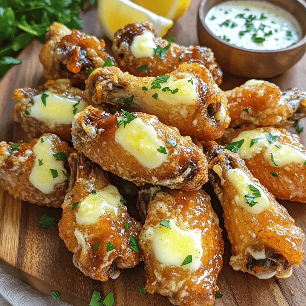 Lastly, add chopped parsley for color and flavor. Serve the wings on a large platter. You can add lemon wedges and extra parsley for a fresh touch. Consider a small bowl of ranch or blue cheese dressing on the side for dipping.