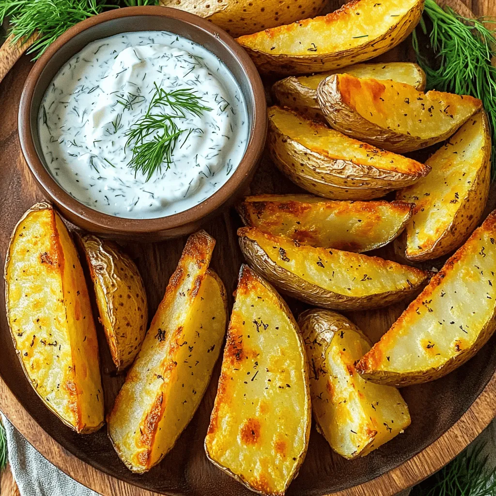 For serving, present the wedges on a large platter. Add a bowl of ranch dip in the center. This dip is made with Greek yogurt, dill, and lemon juice. It’s creamy and tangy, perfect for dipping. Garnish the platter with fresh parsley for color. You can also serve with fresh veggies for a crunch. These wedges are great as a snack or side dish. Enjoy them with friends or family!