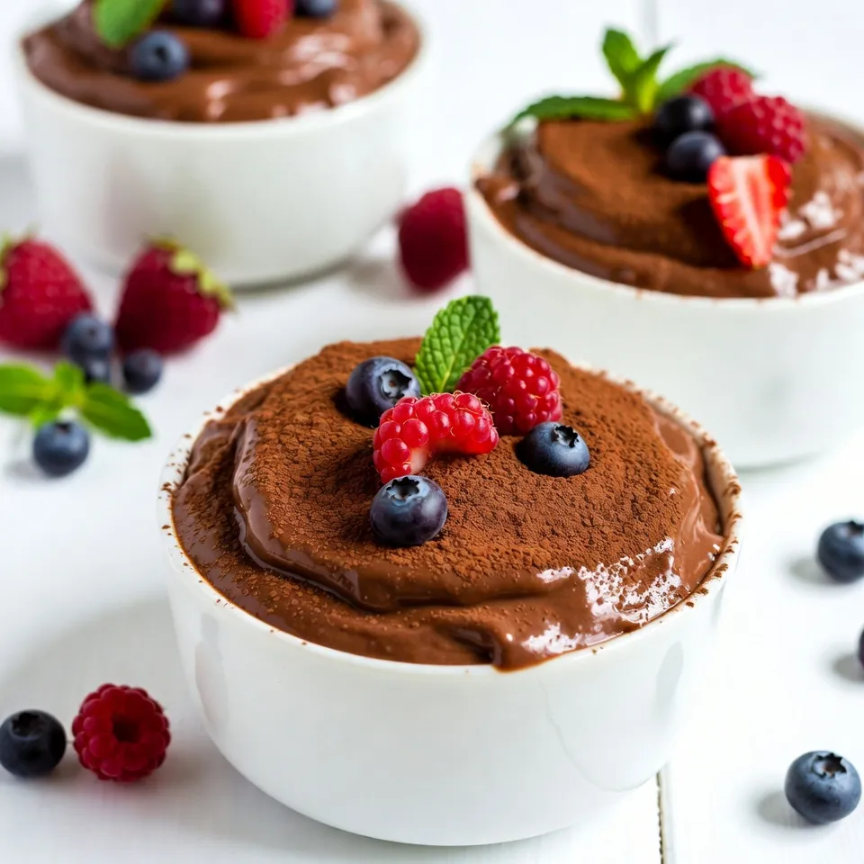 To make a rich and creamy avocado chocolate mousse, you need just a few simple ingredients. Here’s what you will need: - 2 ripe avocados - 1/2 cup unsweetened cocoa powder - 1/4 cup maple syrup (or honey) - 1/4 cup almond milk (or any milk of choice) - 1 teaspoon vanilla extract - Pinch of sea salt - Optional garnishes (fresh berries, mint leaves) These ingredients come together to create a dessert that is both healthy and delicious. The avocados provide creaminess and healthy fats, while cocoa powder adds that rich chocolate flavor. Maple syrup or honey sweetens the mousse without refined sugars. Almond milk gives it a smooth texture, and vanilla extract enhances all the flavors. A pinch of sea salt balances the sweetness, making each bite taste amazing. Using fresh berries or mint leaves on top not only looks nice but also adds bright flavors. You can mix and match the garnishes to make each serving unique. This mousse is a fun and tasty way to enjoy avocados in a whole new light! {{ingredient_image_1}} Start by peeling and pitting the avocados. Cut each avocado in half and remove the pit. Use a spoon to scoop the green flesh into a bowl. Next, measure your dry and liquid ingredients. You need 1/2 cup of cocoa powder, 1/4 cup of maple syrup, and 1/4 cup of almond milk. Also, grab 1 teaspoon of vanilla extract and a pinch of sea salt. Now, combine all the ingredients in a food processor. Add the avocados, cocoa powder, maple syrup, almond milk, vanilla extract, and sea salt. Blend until the mixture is completely smooth. You may need to scrape down the sides to ensure even blending. Taste the mousse and adjust the sweetness if needed. If you want it sweeter, add more maple syrup. Blend again to mix everything well. You want a velvety texture that is thick but not too stiff. Refrigeration is key. Chill the mousse in the fridge for at least 30 minutes. This helps it firm up and lets the flavors blend. For serving, transfer the mousse into bowls or ramekins. Garnish with fresh berries and mint leaves for a nice touch. This adds color and freshness to your dish. Enjoy your creamy, chocolatey treat! To get a smooth mousse, I blend the ingredients well. Start by adding the ripe avocados, cocoa powder, maple syrup, almond milk, vanilla extract, and sea salt into a food processor. Blend until the mix is silky and smooth. If you find it gritty, keep blending. Scrape the sides often to mix everything evenly. You want a creamy texture that feels rich in your mouth. Sweetness is key in this recipe. I taste the mousse before serving. If it's not sweet enough, I add more maple syrup. Blend again to mix. You can also play with flavors. For a twist, try adding a dash of cinnamon or a pinch of chili powder. These spices can make the mousse even more fun and unique. I recommend serving the mousse cold after chilling for at least 30 minutes. This helps it set and lets the flavors mingle. For a pretty finish, I like to top it with fresh berries and mint leaves. This adds color and freshness. Pair it with a light cake or some cookies for a delightful dessert experience. Pro Tips Choose Ripe Avocados: Make sure your avocados are ripe for the creamiest texture. They should yield slightly to gentle pressure when squeezed. Unripe avocados will result in a gritty mousse. Adjust Sweetness to Taste: The sweetness of your mousse can be adjusted to your preference. Start with the recommended amount of maple syrup or honey, then add more if desired after blending. Chill for Best Consistency: Allow the mousse to chill in the refrigerator for at least 30 minutes. This helps it firm up and enhances the flavors, making for a more enjoyable dessert. Garnish with Fresh Ingredients: Elevate your presentation by garnishing the mousse with fresh berries and mint leaves. This not only adds color but also a refreshing contrast to the rich chocolate flavor. {{image_2}} You can make this mousse fit your diet easily. For a vegan option, swap honey with maple syrup. This keeps it sweet and plant-based. If you have nut allergies, use oat milk or soy milk instead of almond milk. These swaps keep the mousse creamy and rich without any nuts. Want to change up the taste? Add a shot of espresso or brewed coffee to the mix. This gives the mousse a deep, rich flavor. You can also infuse it with citrus zest. Try using orange or lemon zest for a bright, fresh twist. Both options make each bite exciting and unique. Garnishing can take your mousse to the next level. Use fresh berries like strawberries or raspberries for a pop of color. You might also try sliced bananas or kiwi for a different look. For a fancy touch, consider using mint leaves as a garnish. Arrange everything neatly in a glass or bowl. This makes your dessert not only tasty but also beautiful on the plate. To keep your avocado chocolate mousse fresh, use airtight containers. Small glass jars work well. You can also use plastic containers with tight lids. Before storing, cover the mousse with plastic wrap. This step helps keep air out and prevents browning. If you plan to use it later, chill the mousse first. The cold helps keep the texture nice and smooth. Make sure the mousse is completely cool before sealing it. This way, it stays thick and creamy. The mousse lasts about three days in the refrigerator. It tastes best when enjoyed fresh. After that, it may start to lose its flavor and texture. Signs of spoilage include a change in color or a sour smell. If the mousse looks brown or has an off odor, it’s time to toss it. Always check for these signs before serving. No, you cannot taste the avocado. The cocoa powder masks the avocado flavor. The mousse has a rich, chocolatey taste. You will enjoy its creamy texture without any avocado hints. The cocoa and maple syrup create a sweet experience. This makes the dessert feel indulgent and satisfying. Yes, you can make this mousse ahead of time. Prepare it up to two days in advance. Just blend all the ingredients as usual. Then, 