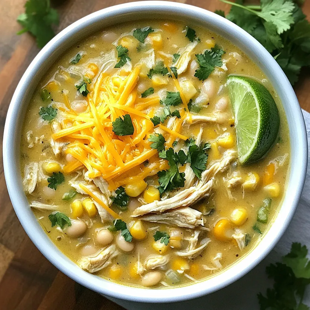 A rich and creamy chili made with shredded chicken, white beans, and spices, perfect for a cozy meal.