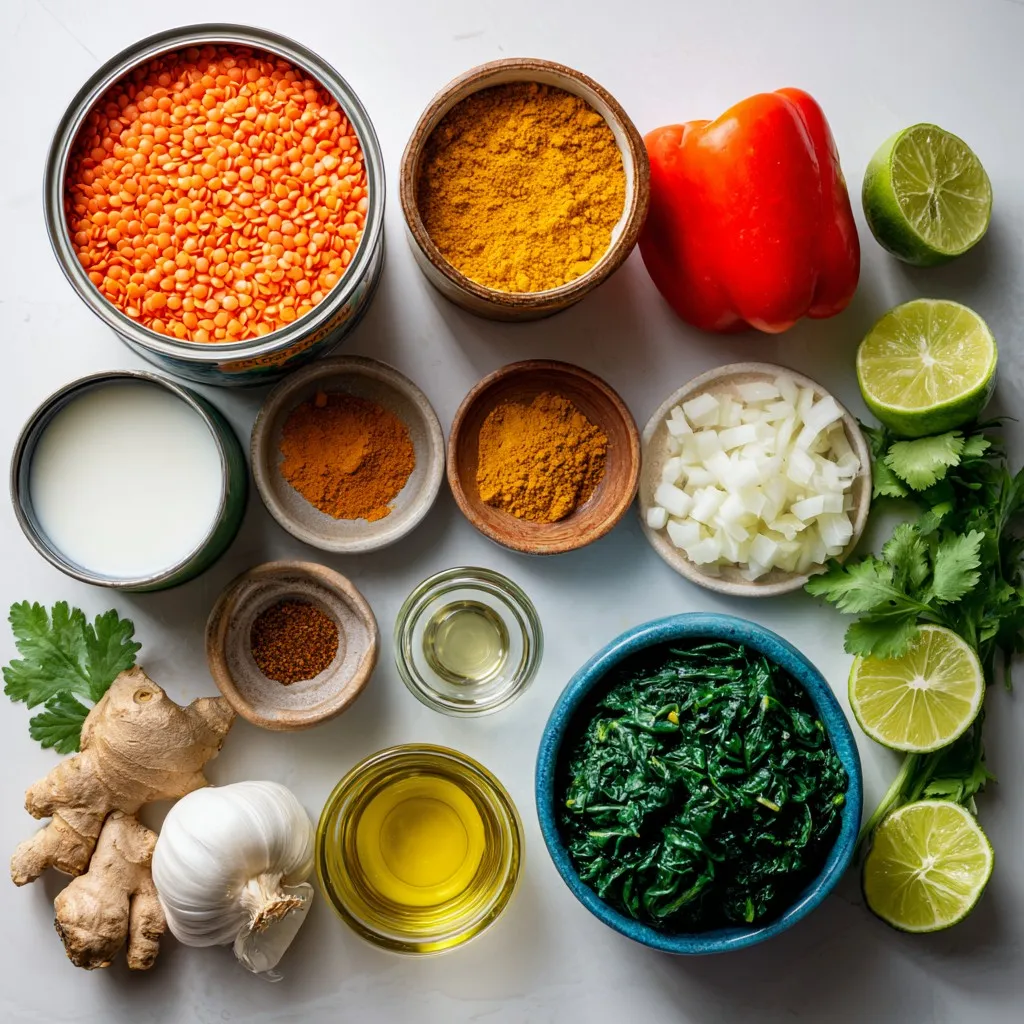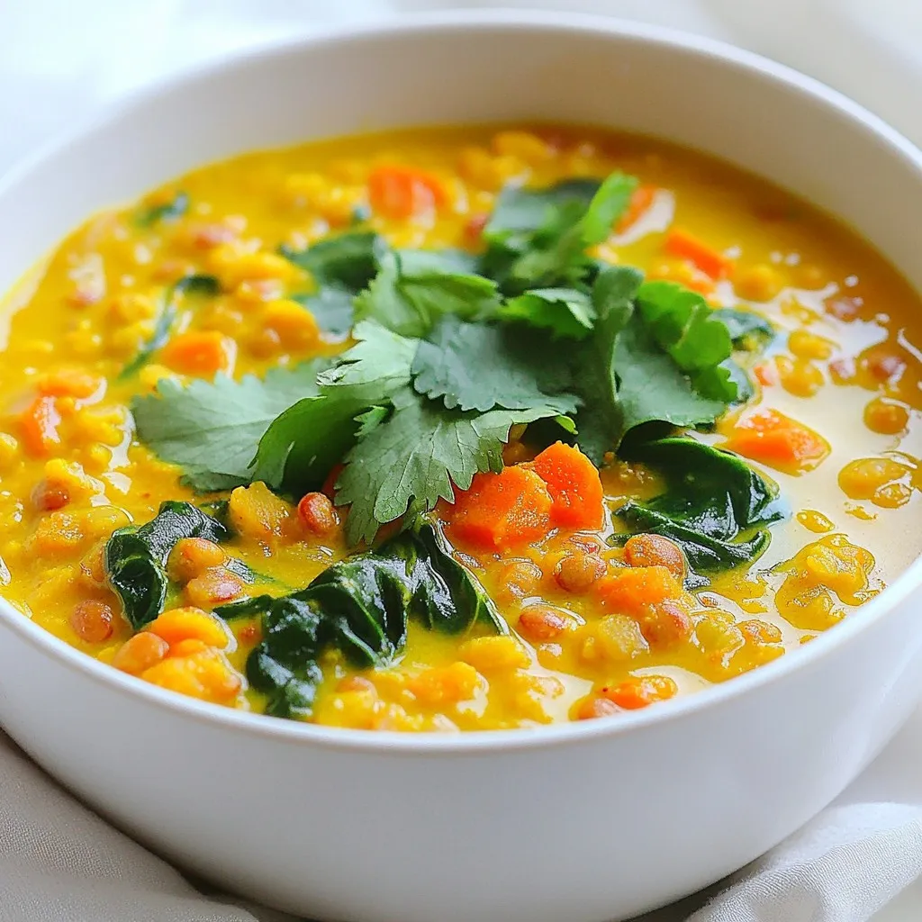 Red lentils are packed with protein and fiber. They help keep you full and satisfied. Coconut milk adds creaminess and healthy fats. It also brings a rich flavor to the dish. Spinach is a great source of vitamins and minerals. It boosts the nutritional value of your meal.