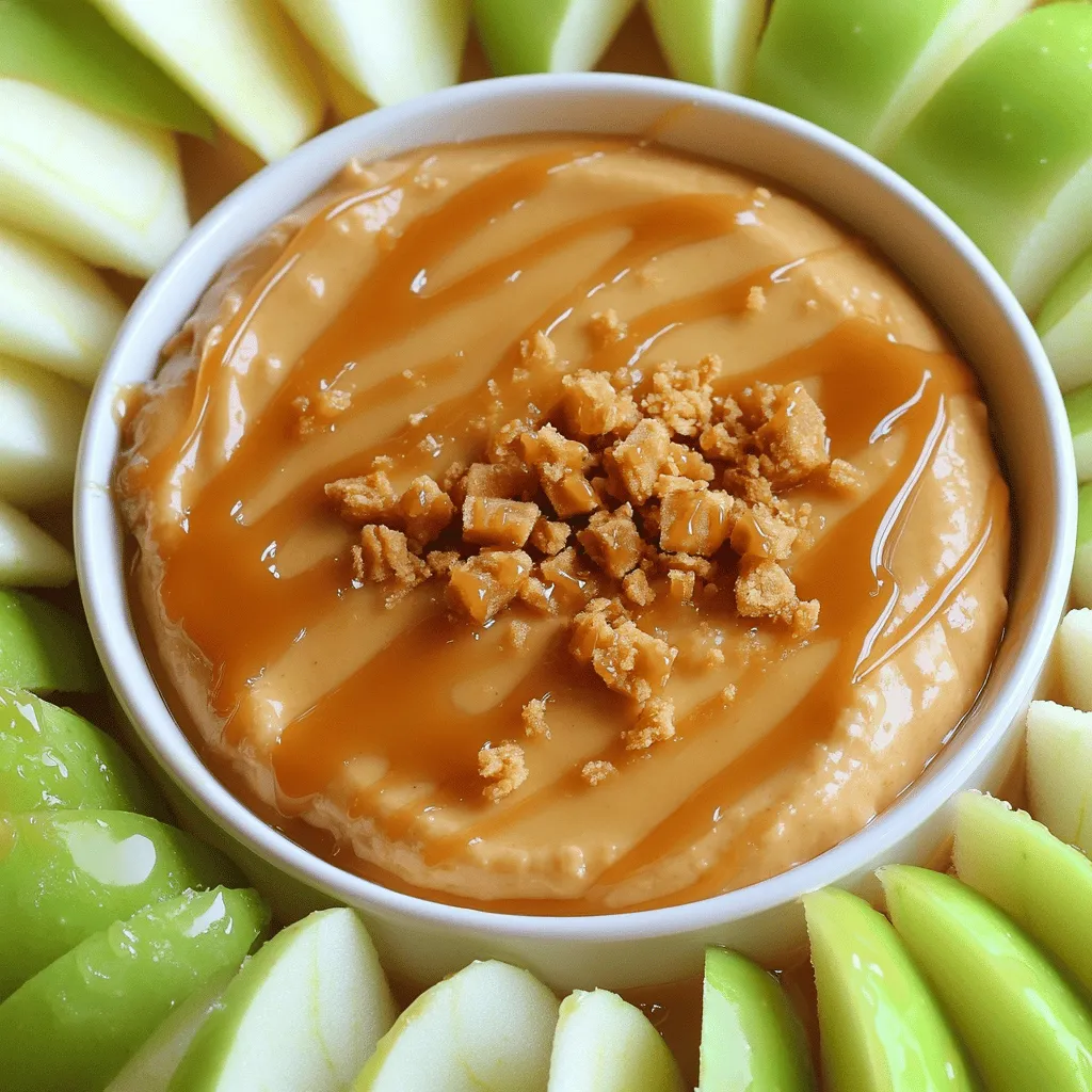 Make your dip look amazing! Arrange apple slices in a circle around the dip. This makes it inviting. Drizzle extra caramel sauce on top to add shine. You can also sprinkle toffee bits for a nice touch.