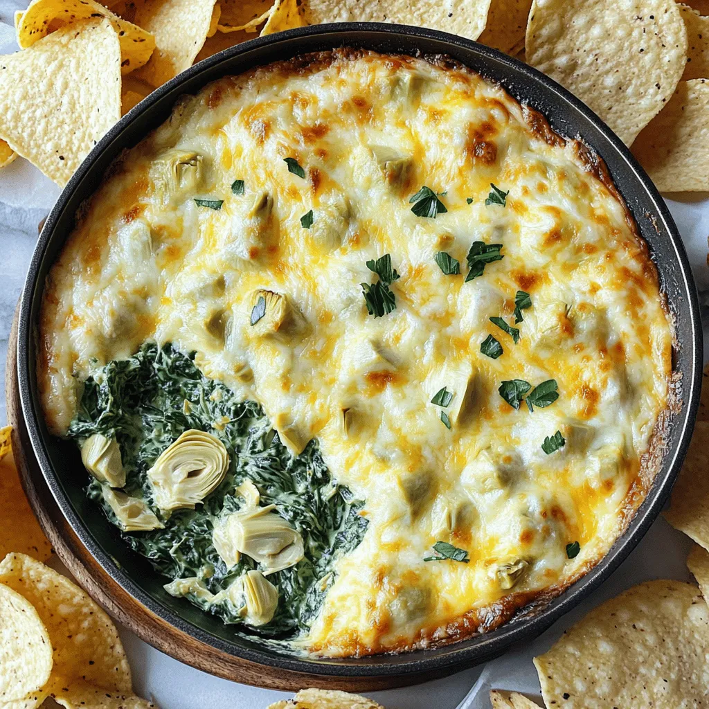 To start, you need fresh spinach. It adds bright green color and a healthy touch. Next, grab canned artichoke hearts. They give a nice, tender bite. Cream cheese is a must for a smooth base. Sour cream adds creaminess and tang. For that cheesy goodness, use shredded mozzarella. Grated Parmesan brings a salty flavor that enhances the dip.