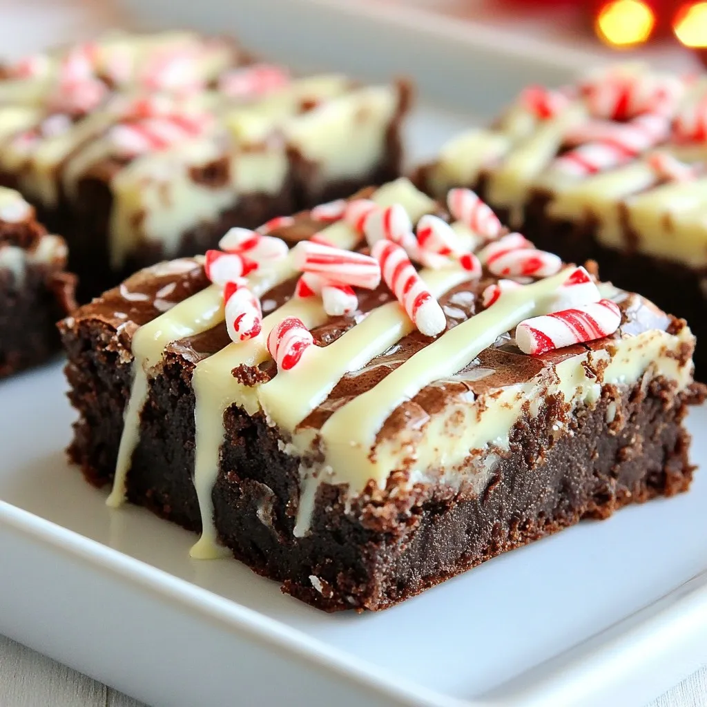 Deliciously rich brownies infused with chocolate and peppermint flavors, topped with white chocolate and crushed candies.