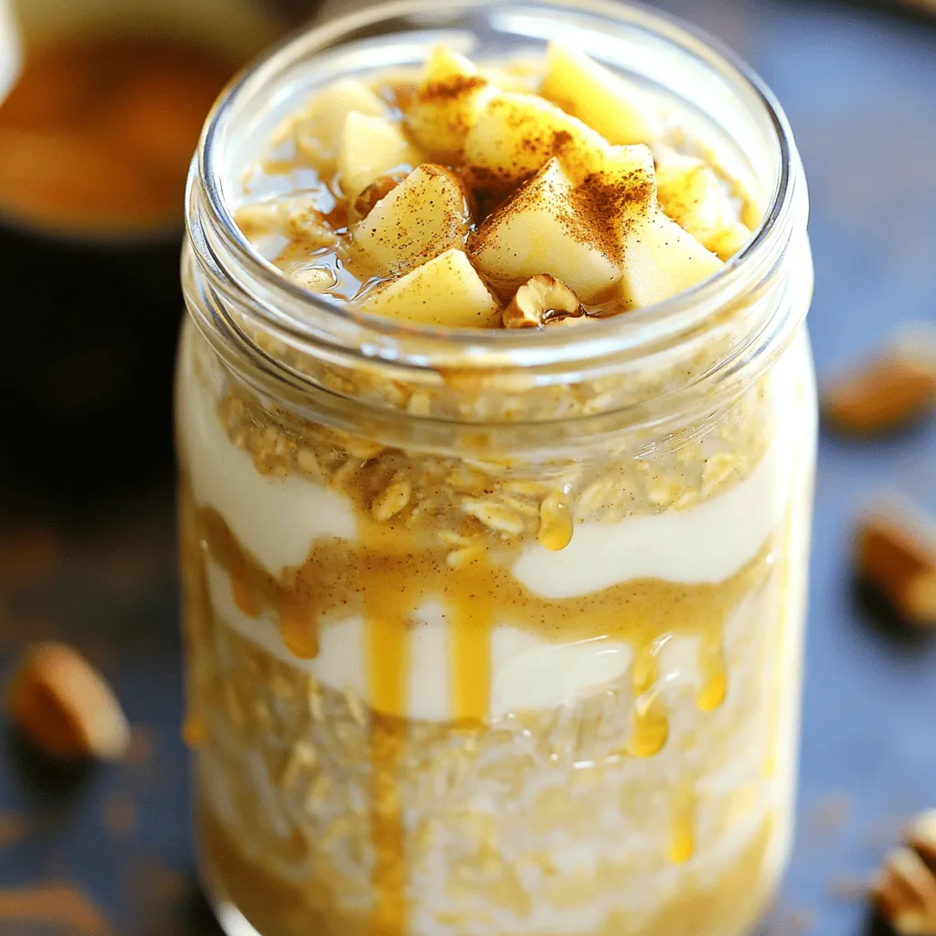 Top your oats with the reserved diced apple and chopped nuts. For extra flavor, sprinkle a bit more cinnamon on top. You can also drizzle a bit of maple syrup or add a dollop of yogurt for creaminess. Enjoy your delicious cinnamon roll overnight oats!