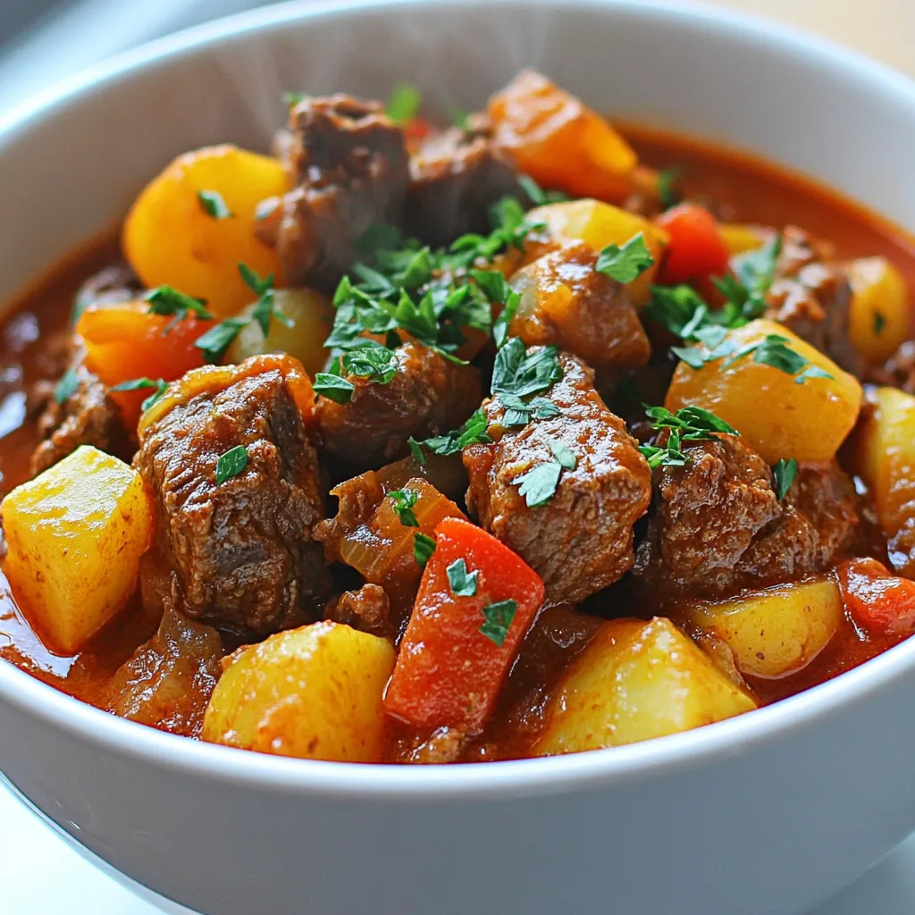 A rich and flavorful beef stew with paprika and vegetables, perfect for a comforting meal.