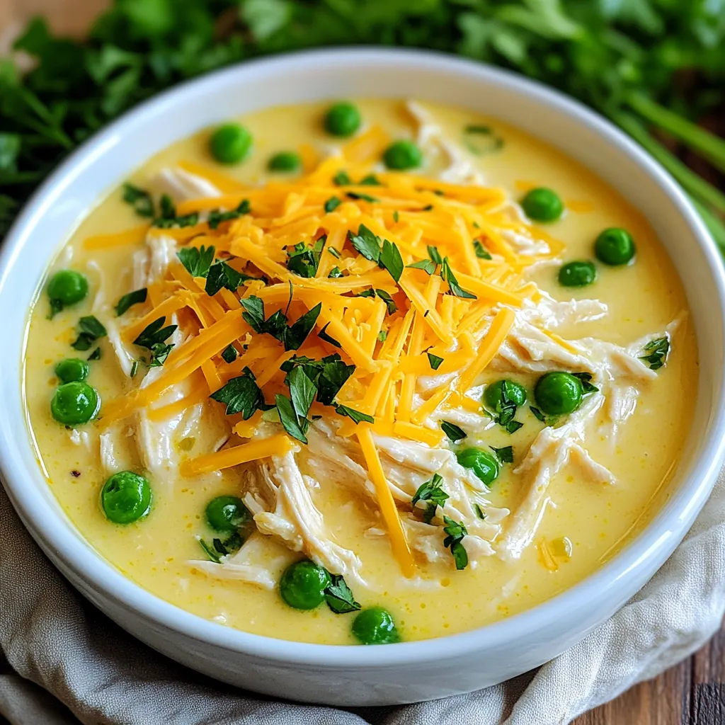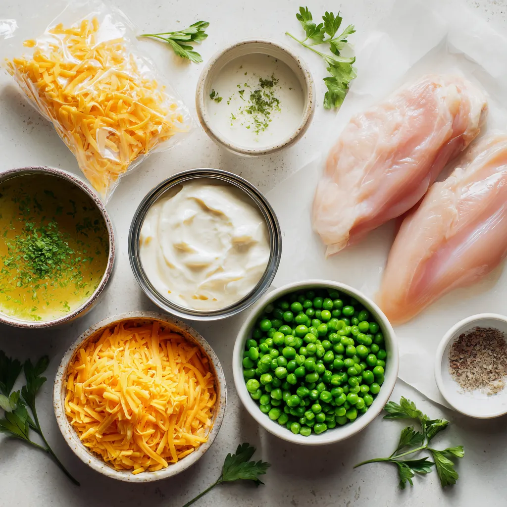 - 4 boneless, skinless chicken breasts - 1 packet (1 oz) ranch dressing mix - 1 cup cream cheese, softened - 1 cup chicken broth - 1 can (15 oz) cream of chicken soup - 1 cup shredded cheddar cheese - 1 cup frozen peas (optional) - ½ teaspoon garlic powder - Salt and pepper to taste - Fresh parsley for garnish To make Creamy Ranch Crockpot Chicken, gather these simple ingredients. You will need chicken breasts as the main protein. They cook well and stay juicy in the crockpot. Next, the cream cheese adds a rich flavor and smooth texture. It blends nicely with the ranch dressing mix. Together, these create a creamy sauce. You should also have chicken broth and cream of chicken soup. They enhance the dish's flavor and keep the chicken moist. Don't forget the seasonings! Garlic powder, salt, and pepper add depth to the taste. You can adjust these to your liking. Lastly, shredded cheddar cheese gives the dish a cheesy finish. If you want to add a pop of color and nutrition, toss in some frozen peas. This dish is easy to prepare and uses ingredients you may already have at home. You can make a delicious meal without much fuss! {{ingredient_image_1}} Seasoning the Chicken Start by placing the chicken breasts in your slow cooker. Sprinkle them with salt, pepper, and garlic powder. This simple blend adds great flavor. Mix it well to cover each piece. Mixing the Creamy Sauce In a medium bowl, combine the cream cheese, chicken broth, ranch dressing mix, and cream of chicken soup. Stir until it becomes smooth and creamy. This sauce is the star of your dish. Once mixed, pour the creamy sauce over the seasoned chicken. Cooking Time on Low vs High Cover the slow cooker with its lid. You can cook on low for 6-7 hours or on high for 4-5 hours. Cooking on low gives a more tender result. Check the chicken to ensure it is fully cooked and tender before moving on. Shredding the Chicken About 30 minutes before you plan to serve, use two forks to shred the chicken right in the pot. This method keeps all the flavors locked in. Adding Cheese and Peas Next, stir in the shredded cheddar cheese and frozen peas if you like them. Mix it well, and let it cook for another 30 minutes on low. This will melt the cheese and heat the peas through. Adjusting Seasoning Finally, taste the dish before serving. Add more salt and pepper if needed. This extra step makes sure it tastes just right. Serve hot and enjoy your creamy ranch goodness! - Ensuring Even Cooking: Cut chicken into similar sizes. This helps it cook at the same speed. Place the chicken in a single layer. Don’t stack pieces too high. This allows heat to reach all parts. - Avoiding Dry Chicken: Use enough liquid in the pot. The cream cheese and broth help keep the chicken moist. Cook on low if you have time. Low heat gives juicy results. - Additional Seasonings: Add herbs like thyme or rosemary for extra taste. A squeeze of lemon juice can brighten flavors. Try a pinch of paprika for a smoky touch. - Suggested Garnishes: Fresh parsley adds color and freshness. You can also sprinkle crispy bacon bits for crunch. Serve with sliced green onions for a nice bite. - Recommended Crockpot Models: Look for a 6-quart model for this recipe. Brands like Hamilton Beach and Crock-Pot are reliable. A programmable model is great for busy cooks. - Must-Have Cooking Utensils: Use a sturdy pair of forks to shred the chicken. A mixing bowl helps combine the creamy sauce. Keep measuring cups handy for precise ingredients. Pro Tips Use Fresh Herbs: Adding fresh herbs like thyme or dill can elevate the flavor of your dish and add a refreshing touch. Make It Spicy: If you enjoy a bit of heat, consider adding red pepper flakes or a splash of hot sauce to the cream cheese mixture. Meal Prep Friendly: This dish is great for meal prep! You can double the recipe and store leftovers in the fridge for up to 4 days. Serve with Sides: Pair this creamy ranch chicken with rice, mashed potatoes, or a fresh salad for a complete meal. {{image_2}} Chicken Breast Alternatives You can use different cuts of chicken. Thighs add more flavor and moisture. You can also try using turkey breasts. They work well too. Just remember to adjust cooking time for different cuts. Dairy-Free Options If you want a dairy-free dish, swap cream cheese for a non-dairy cream. Use coconut milk or a cashew cream. Both add creaminess without dairy. Check for dairy-free ranch dressing mixes for flavor. Adding Vegetables You can easily add veggies to this dish. Carrots, bell peppers, and broccoli work great. They add color and nutrients. Just toss them in the slow cooker with the chicken. Spicy Kick Variants For a spicy twist, add red pepper flakes or hot sauce. Stir in jalapeños for heat. You can also use spicy ranch dressing mix. Adjust to your taste, and enjoy the extra flavor. Side Dishes This chicken pairs well with many sides. Try mashed potatoes, steamed rice, or a fresh salad. These options soak up the creamy sauce and add balance to your meal. Serving Over Rice or Pasta Serve this dish over rice or pasta for a filling meal. The sauce makes everything delicious. It’s perfect for a cozy dinner with family or friends. To keep your Creamy Ranch Crockpot Chicken fresh, follow these steps: - Refrigeration Guidelines: Place leftovers in an airtight container. Store in the fridge for up to four days. Make sure the chicken cools down before sealing. This keeps bacteria away and maintains flavor. - Freezing Tips: You can freeze this dish for longer storage. Use freezer-safe bags or containers. It stays good for three months. Thaw in the fridge overnight before reheating. To enjoy your leftovers again, follow these methods: - Best Methods for Reheating: The microwave works well for quick reheating. Use a microwave-safe dish and cover it. Heat in short bursts, stirring in between. You can also reheat on the stove over low heat. Stir often to prevent sticking. - Ensuring Quality and Flavor Preservation: Add a splash of chicken 