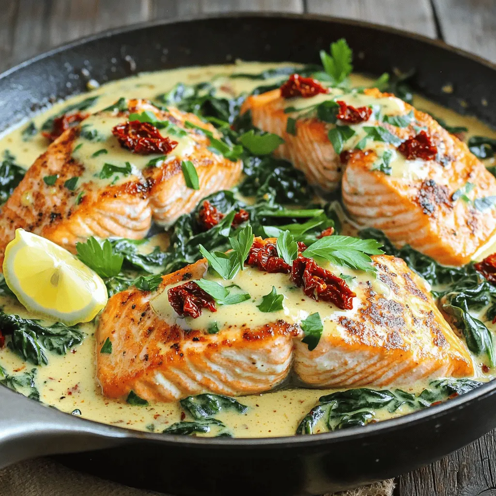 The main ingredients drive the flavor in this dish. Salmon fillets are rich and full of healthy fat. Sun-dried tomatoes add a sweet and tangy burst. Heavy cream brings that lush texture. Fresh spinach gives a nice color and nutrients. Garlic adds depth to the sauce.