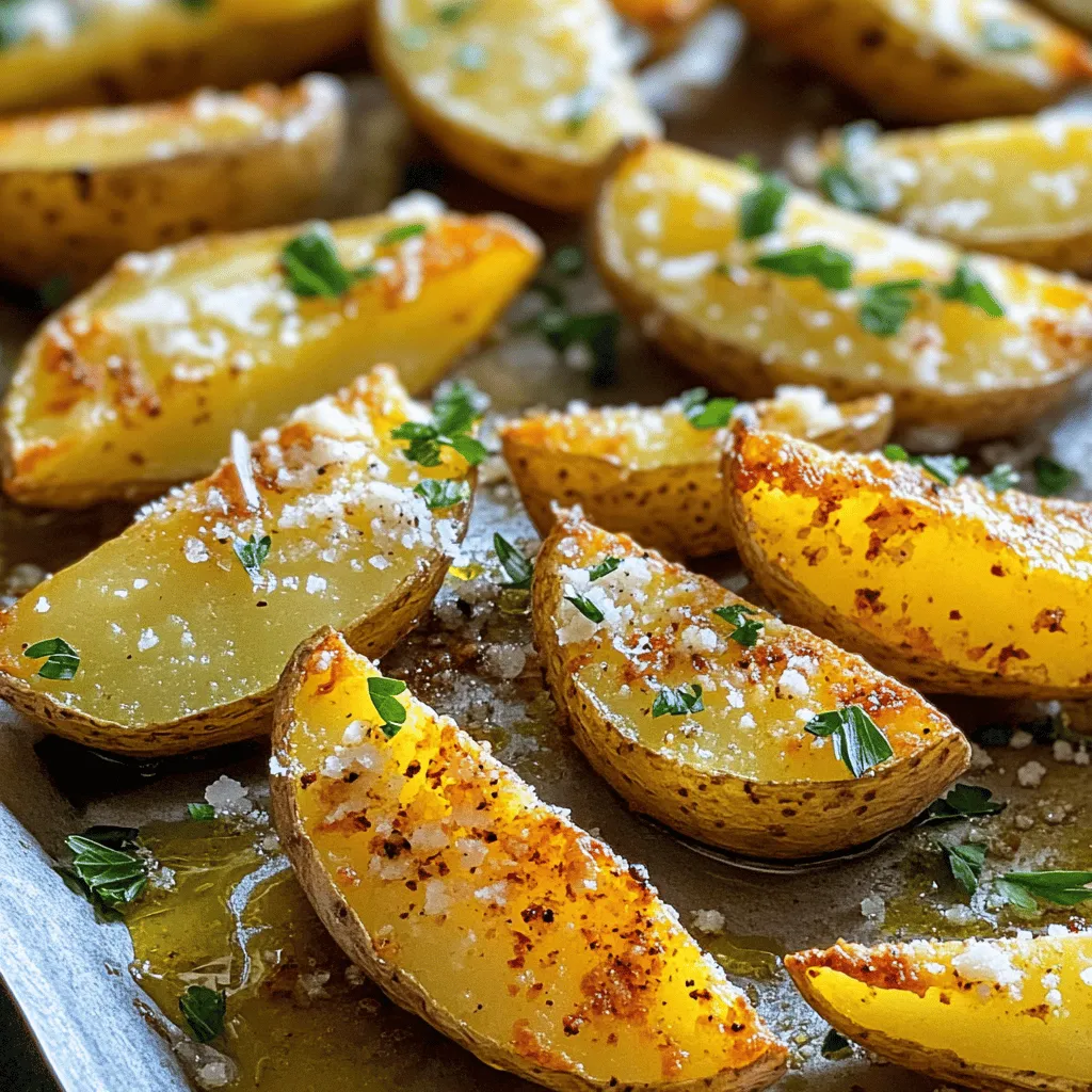 To make crispy garlic parmesan potato wedges, start with fresh russet potatoes. These potatoes give the best texture and flavor. You will need four of them, cut into thick wedges. The olive oil adds richness and helps them crisp up nicely in the oven.