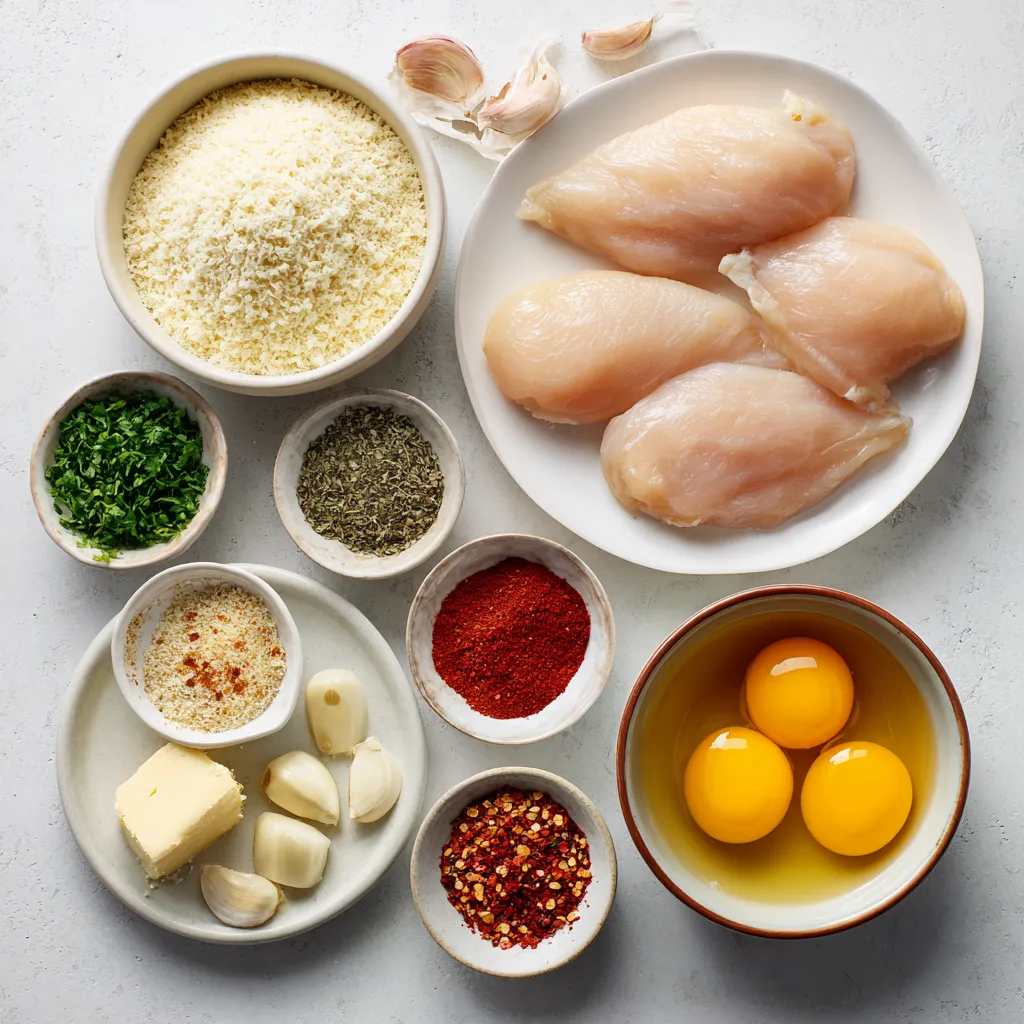 The main star here is the chicken. I like to use boneless, skinless chicken breasts. They cook evenly and stay juicy. The panko breadcrumbs and grated Parmesan cheese create a crunchy coating. This mix gives the chicken a golden, crispy texture. Beaten eggs hold everything together, while flour helps the coating stick.