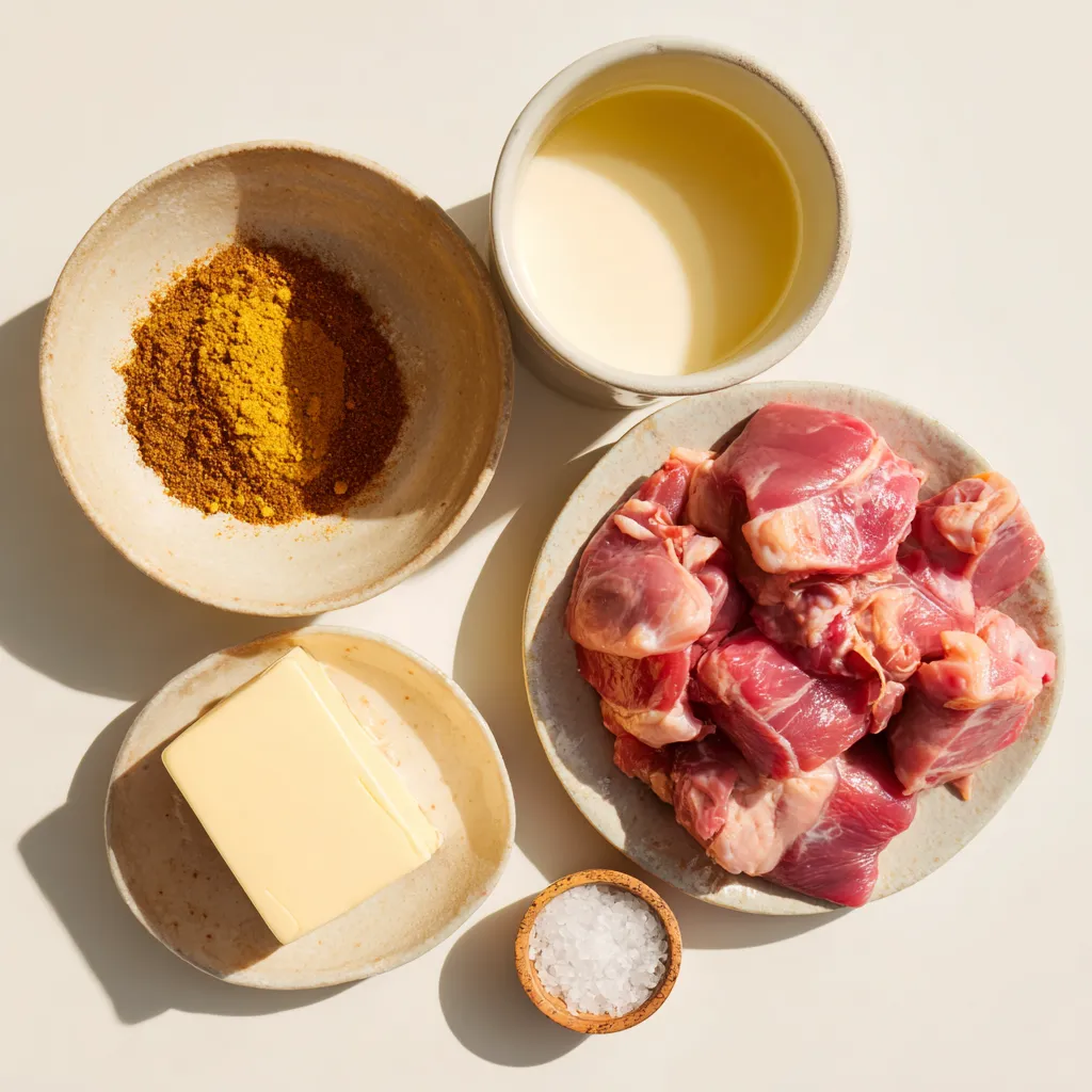 These ingredients work together to create a rich and creamy dish. The chicken thighs add flavor and tenderness. Heavy cream gives a smooth texture. Unsalted butter enhances the richness, while garam masala brings warmth and spice. Salt balances all the flavors.