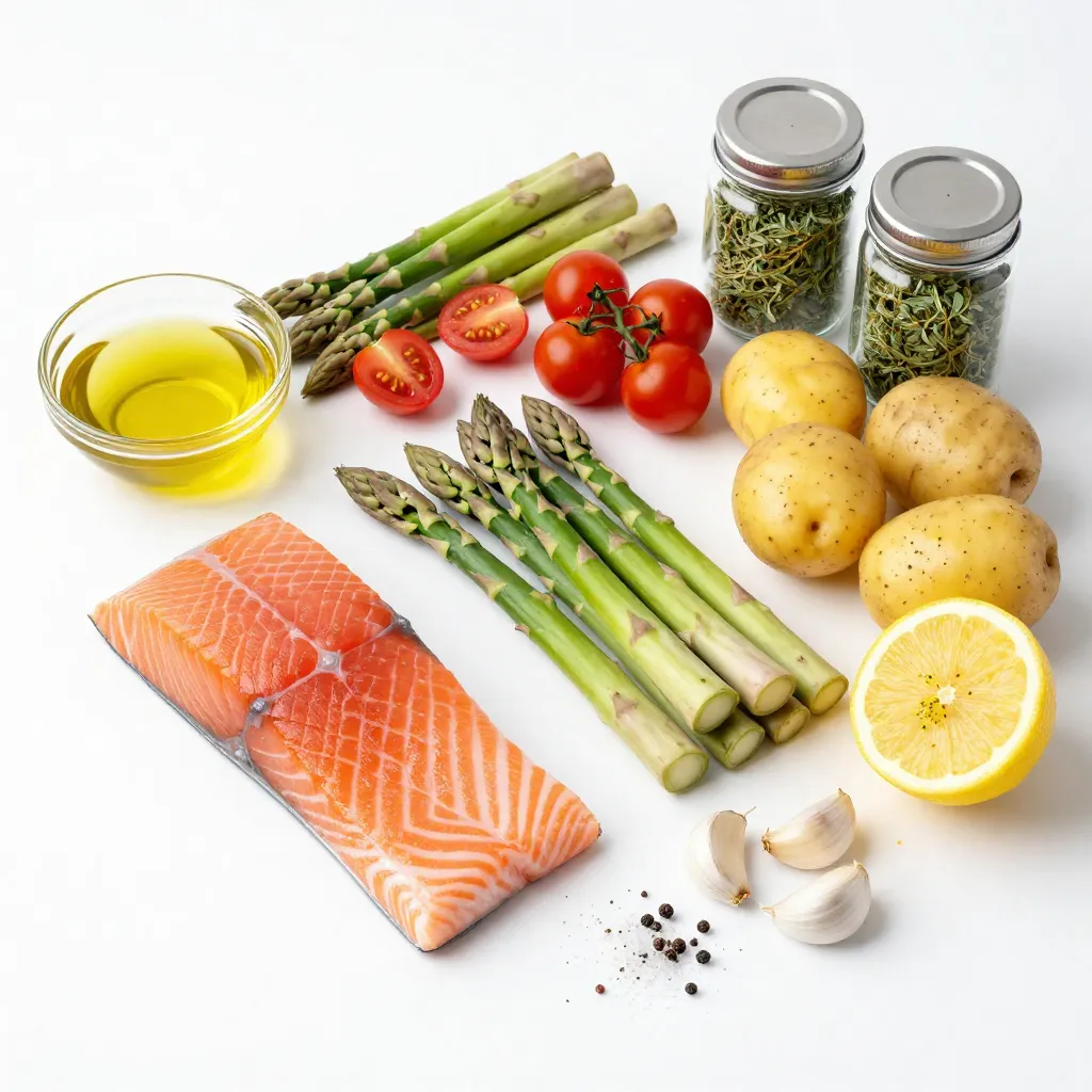 To make this flavorful dish, you need: - 4 salmon fillets - 2 tablespoons olive oil - 2 tablespoons fresh lemon juice - Zest of 1 lemon - 2 cloves garlic, minced - 1 teaspoon dried oregano - 1 teaspoon dried thyme - Salt and pepper to taste - 1 cup cherry tomatoes, halved - 1 cup asparagus spears, trimmed - 1 cup baby potatoes, halved or quartered These ingredients work together to create a bright and zesty flavor in your meal. The salmon gives a rich taste, while the veggies add color and nutrition. You can add some fresh garnishes to elevate your dish: - Fresh parsley - Lemon wedges These garnishes add a pop of color and extra flavor. Fresh parsley brightens the dish, while lemon wedges give an extra citrus kick. Try them to make your meal even more appealing! {{ingredient_image_1}} First, set your oven to 400°F (200°C). This high heat helps cook the salmon and veggies just right. While the oven warms up, take a large sheet pan. Grab your baby potatoes and cut them in half or quarters. Spread them in a single layer on the pan. Drizzle a little of the lemon herb mix on the potatoes. Toss them gently to coat with the oil and seasonings. This step will help them roast evenly. In a small bowl, combine 2 tablespoons of olive oil, 2 tablespoons of fresh lemon juice, and the zest from one lemon. Next, add 2 minced garlic cloves, 1 teaspoon of dried oregano, and 1 teaspoon of dried thyme. Season with salt and pepper to taste. Whisk everything together until it blends well. This marinade gives your salmon a fresh, zesty flavor. After the potatoes roast for 15 minutes, it’s time to add more veggies. Carefully take out the sheet pan. Add 1 cup of asparagus spears and 1 cup of halved cherry tomatoes. Place 4 salmon fillets on top of the veggies. Brush the salmon with the remaining lemon herb mixture. This will keep the fish moist and flavorful. Return the sheet pan to the oven. Roast for an additional 12 to 15 minutes. The salmon is done when it flakes easily with a fork. Let it rest for a few minutes before serving. Enjoy your delicious meal! To achieve flaky salmon, cook it at 400°F (200°C). This temperature helps the salmon cook evenly. When done, it should flake easily with a fork. You can check this by gently pressing down on the fillet with a fork. If it separates into sections, it’s ready to eat. Marinating your salmon helps boost the taste. I recommend marinating for at least 30 minutes. This allows the flavors to soak in. You can add more herbs like dill or cilantro for an extra kick. Spices like paprika or cumin can also add depth. Feel free to mix and match based on your taste. Pro Tips Perfectly Flaky Salmon: To ensure your salmon is perfectly cooked, check for doneness by inserting a fork into the thickest part; it should flake easily and appear opaque. Veggie Variations: Feel free to substitute or add other seasonal vegetables like bell peppers or zucchini for a colorful and nutritious dish. Make It Your Own: Experiment with different herbs such as dill or basil to customize the flavor profile to your liking. Meal Prep Friendly: This dish is great for meal prepping; simply store the leftovers in airtight containers for up to 3 days and reheat in the oven or microwave. {{image_2}} You can switch up the veggies to keep this dish fresh. Choose seasonal options like zucchini, bell peppers, or broccoli. These vegetables roast well and add flavor. If you want to substitute, try carrots or green beans. Just cut them to similar sizes for even cooking. Remember, the goal is to have colorful and tasty veggies alongside your salmon. You don’t have to stick with salmon. Other fish like trout or cod work great too. They bring their own flavors and textures to the dish. Adjusting cooking times is key. For thinner fillets, check them at about 10-12 minutes. Thicker pieces may need an extra few minutes. Always look for that flaky texture to know it's done. After enjoying your sheet pan lemon herb salmon, you may have some leftovers. Proper storage keeps it tasty for later. - Cool the leftovers: Allow the salmon and veggies to cool at room temperature for about 30 minutes. - Use airtight containers: Transfer the leftovers into airtight containers. This helps keep moisture in and air out. - Refrigerate promptly: Store the containers in the fridge within two hours. Salmon stays fresh for up to three days. - Label and date: If you wish, label the containers with the date. This helps you keep track of freshness. Reheating your salmon and veggies can be tricky. You want to keep them moist and flavorful. - Oven method: Preheat your oven to 350°F (175°C). Place the salmon and veggies on a baking sheet. Cover with foil to keep moisture in. Heat for about 10-15 minutes until warm. - Microwave method: If you’re in a hurry, use the microwave. Place the salmon and veggies on a microwave-safe plate. Cover with a damp paper towel. Heat in 30-second bursts until warm, checking often. - Pan method: For a quick option, place the salmon in a skillet over low heat. Add a splash of water or broth. Cover and heat for about 5 minutes, checking to avoid drying. These methods will help you enjoy your flavorful sheet pan lemon herb salmon just as much the next day! Look for these signs of perfectly cooked salmon: - The salmon should be opaque and light pink. - It will flake easily when you poke it with a fork. - The internal temperature should reach 145°F (63°C). When you see these signs, your salmon is done. A little care ensures it tastes great. Yes, you can use frozen salmon. Here are tips for using frozen vs. fresh salmon: - Thaw the salmon in the fridge overnight for best results. - If you're short on time, you can run it under cold water for a quick thaw. - Adjust cooking time if your salmon is still slightly frozen. It may need a few extra minutes. Frozen salmon can taste just as good if you cook it right. Pair your salmon with these side dish recommendations for balanced meals: - Roasted asparagus: It