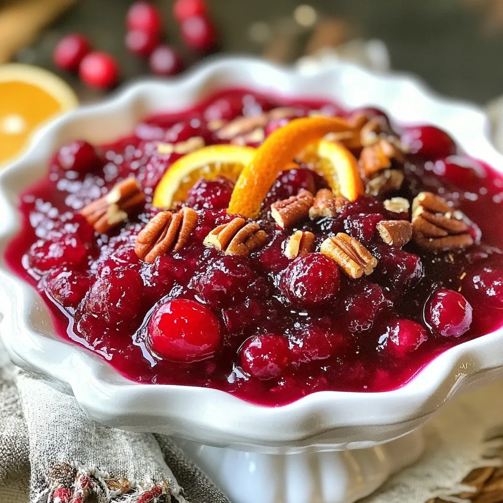 A delightful cranberry sauce infused with orange and spices, perfect for holiday gatherings.