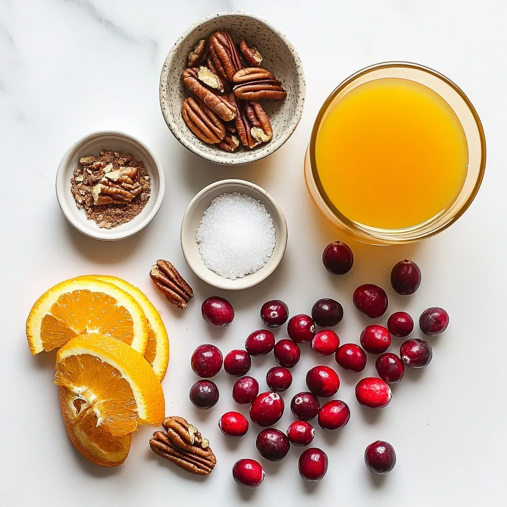 These ingredients create a balance of sweet and tart flavors. The fresh cranberries give a bright taste, while the orange juice adds a lovely zing.