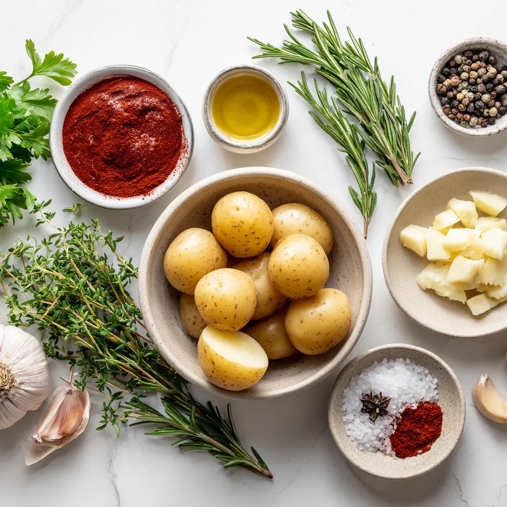 First, gather your ingredients. You need 1.5 pounds of baby potatoes, halved. Next, get 4 tablespoons of olive oil and 6 cloves of minced garlic. You will also need 1 tablespoon each of chopped rosemary and thyme. Don’t forget 1 teaspoon of smoked paprika, plus salt and pepper. Finally, grab some fresh parsley for a pretty garnish.