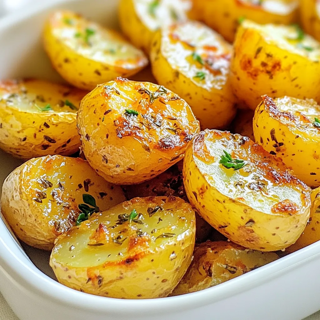 A delicious side dish of roasted baby potatoes seasoned with garlic and herbs.