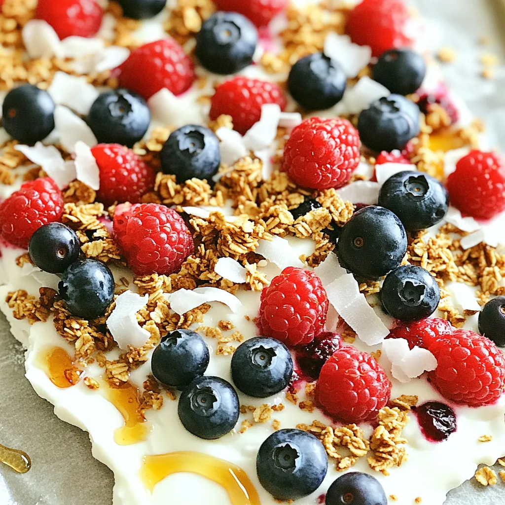 To make Greek Yogurt Breakfast Bark, gather these fresh and tasty items. Start with 2 cups of plain Greek yogurt. This creamy base gives your bark a lovely texture and loads of protein. Next, choose your sweetener: honey or maple syrup. You need 2 tablespoons for a hint of sweetness.
