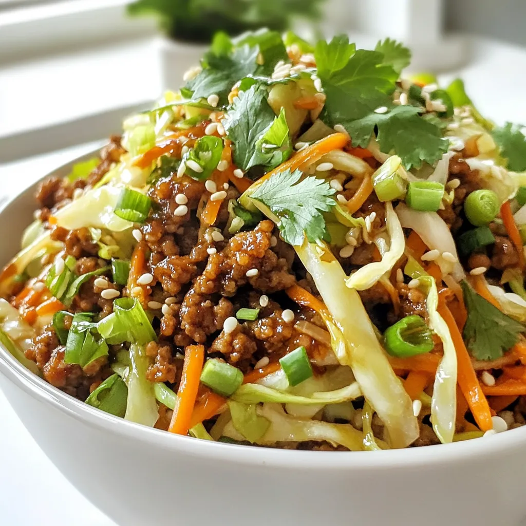 Are you craving the taste of your favorite egg rolls but want a healthier option? Look no further! My Healthy Egg Roll in a Bowl recipe combines lean ground turkey, a colorful coleslaw mix, and savory seasonings for a quick, tasty dish. This easy meal packs flavor without all the fat. Join me as I guide you through this simple recipe that’s perfect for busy weeknights and meal prep!