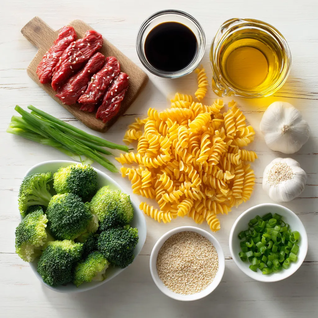 Gather these fresh ingredients before you start cooking. The rotini pasta is the base of this dish. Its twisty shape holds onto the sauce well. The flank steak offers rich flavor and tender bites. Honey brings a sweet touch that balances the savory notes.