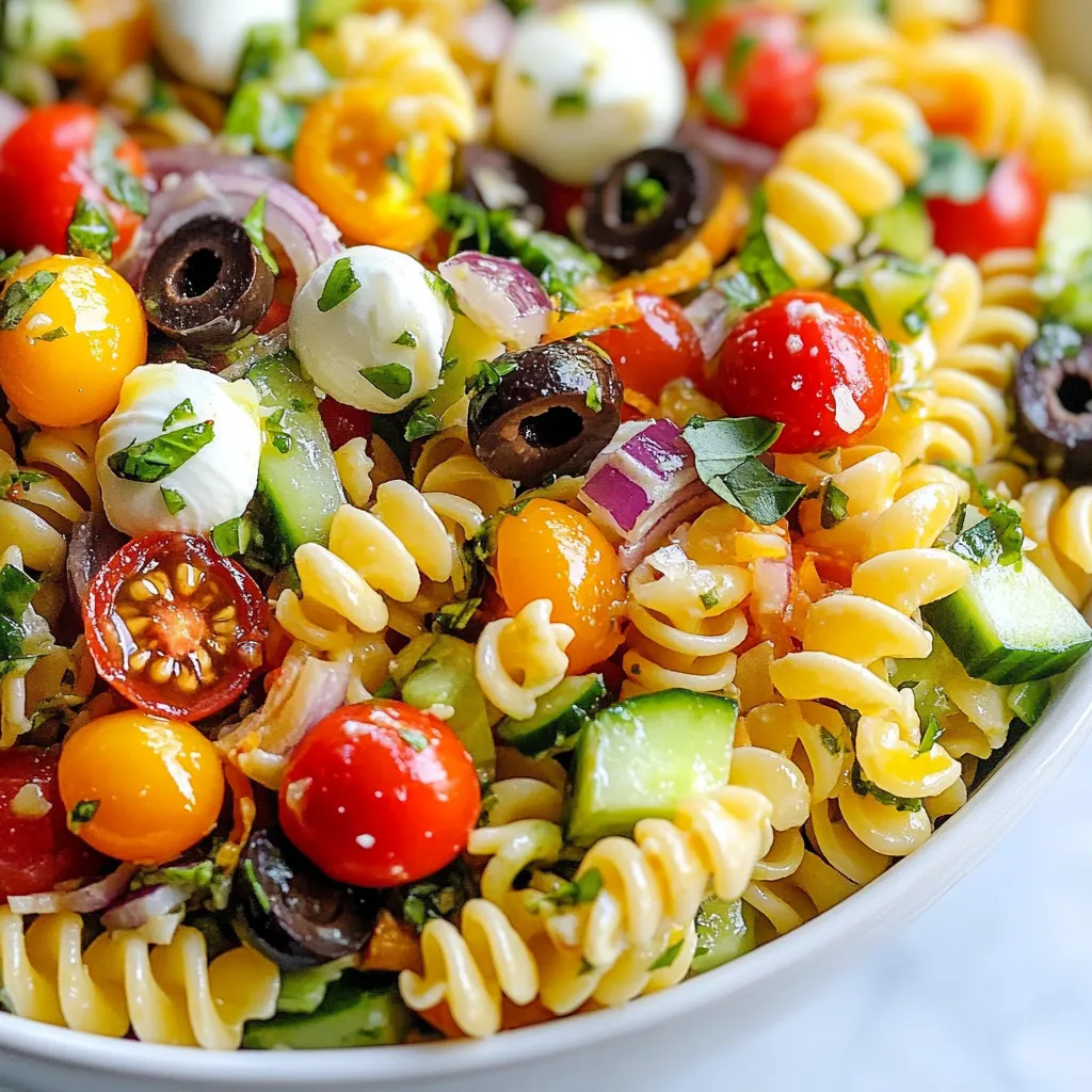 - Vibrant Colors: This pasta salad is a feast for the eyes with its array of colorful vegetables that make every bite appealing.