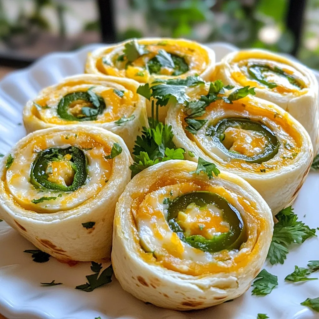Delicious and creamy pinwheels filled with jalapenos and cheese, perfect for a snack or appetizer.