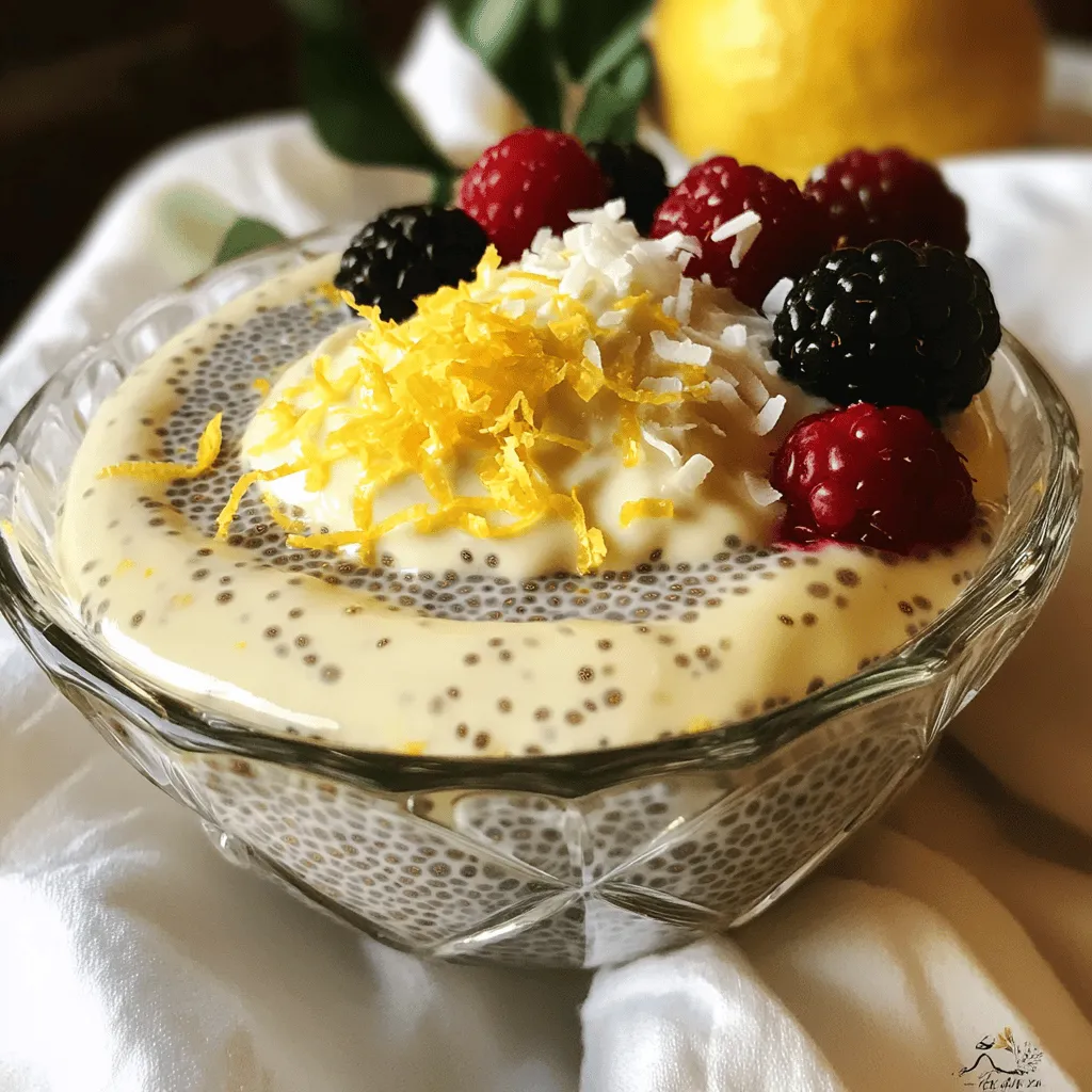 To make lemon cream chia pudding, you need a few key items: - 1/2 cup chia seeds - 2 cups almond milk (or any plant-based milk) - 1/4 cup maple syrup (or honey) - Zest of 1 lemon - 1/4 cup freshly squeezed lemon juice - 1 teaspoon vanilla extract - A pinch of salt These ingredients work together to create a tasty and healthy treat. Chia seeds are the star of this recipe. They soak up the liquid and become soft and pudding-like. Almond milk gives it a creamy base. You can use other plant-based milks if you like. Maple syrup or honey adds just the right amount of sweetness. The lemon zest and juice bring a bright flavor that makes this pudding refreshing. You can make your pudding even better with some fun toppings: - Fresh berries - Coconut flakes - Crushed nuts Fresh berries add a juicy burst. Coconut flakes bring a chewy texture. Crushed nuts give a nice crunch. You can mix and match these toppings based on your taste. Each choice adds color and flavor, making your pudding look and taste amazing. Enjoy creating your own version of this lemon cream chia pudding! In a medium bowl, combine 2 cups of almond milk and 1/4 cup of maple syrup. Stir these together until they mix well. Next, add in 1/2 cup of chia seeds, the zest of 1 lemon, 1/4 cup of freshly squeezed lemon juice, 1 teaspoon of vanilla extract, and a pinch of salt. Whisk everything together until the chia seeds spread out evenly. This step is key to a smooth texture. After mixing, let the mixture sit for about 10 minutes. This helps the chia seeds absorb the liquid. Stir the mixture again to keep it from clumping. Cover the bowl and place it in the fridge. Allow it to chill for at least 4 hours, or overnight if you can wait. This refrigeration period is crucial for thickening. Once it’s ready, take the pudding out of the fridge. Give it a good stir before serving. If you find it too thick, simply add a bit more almond milk. This adjustment helps you get the right consistency for your taste. Serve the pudding chilled in bowls or glasses. Top it with fresh berries, coconut flakes, or crushed nuts for extra flavor and texture. To make the best chia pudding, focus on texture. First, prevent clumping. This happens when chia seeds stick together in the mixture. After you combine all the ingredients, let the mix sit for about 10 minutes. Then, stir it again. This helps break up any clumps. Repeat this process a few times. Next, achieve the right thickness. Everyone likes their pudding different. If it’s too thick, add a bit more almond milk. Stir well until it blends in. If it’s too thin, let it sit longer in the fridge. The chia seeds will soak up more liquid. To enhance lemon flavor, use fresh ingredients. Fresh lemon juice and zest bring bright taste. You can also try adding more zest for a stronger lemon hit. This boosts the flavor and makes it more fresh. For sweetness, adjust to your taste. Maple syrup is great, but honey works well, too. Taste the mixture before chilling it. If it needs more sweetness, add a bit more syrup or honey. Just remember, the flavor will mellow as it chills. {{image_2}} You can change the flavors in your Lemon Cream Chia Pudding easily. Try using different citrus fruits. For a sweet twist, you can use orange or lime juice instead of lemon juice. Each fruit brings its own special taste. You can also add spices or extracts. A dash of cinnamon or nutmeg can give warmth. A splash of almond or coconut extract adds a nice depth. If you want a sugar-free option, use a sugar substitute. Stevia or monk fruit work well. They keep the sweetness without the calories. For those with nut allergies, choose seed-based milk. Sunflower seed milk or oat milk are great nut-free alternatives. Always check labels to ensure no nuts are added. These swaps help everyone enjoy this tasty treat! To keep your lemon cream chia pudding fresh, store it in an airtight container. This will prevent the pudding from absorbing other odors in your fridge. If you have leftovers, make sure to cover them well. You can keep it in the fridge for up to five days. After that, the texture may change and the taste may fade. Presentation makes a difference! Serve your pudding in clear glasses. This way, you can show off its creamy texture and bright lemon color. Top it with fresh berries, coconut flakes, or crushed nuts for extra flavor and crunch. You can also pair it with granola for a tasty breakfast or snack. This pudding goes well with a light salad or fruit platter too! Chia pudding can last up to five days in the fridge. Store it in an airtight container. This keeps it fresh and tasty. The longer it sits, the thicker it gets. If it becomes too thick, just stir in a bit more almond milk. Yes, you can use various types of milk. Coconut milk adds a rich taste. Soy milk is another good option. You can even try oat milk for a creamy texture. Each milk changes the flavor a bit, so feel free to experiment. Chia seeds are packed with nutrients. They have fiber, protein, and healthy fats. Eating chia seeds may help with digestion. They also support heart health due to omega-3 fatty acids. Plus, they keep you full longer. This makes chia seeds a great snack choice. Chia pudding is simple and fun to make. We learned about key ingredients like chia seeds, plant-based milk, and sweeteners. I shared tips to get the perfect texture and to add great flavors. You can personalize your pudding with various toppings and flavors. Remember to store it right for the best taste. Experiment with the recipe to find your favorite version. Make this tasty treat part of your healthy routine. Enjoy the benefits chia seeds offer, making every bite worth it!
