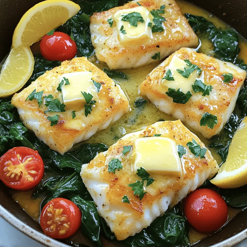 The main ingredients make this dish shine. Cod fillets are the star. They are mild and flaky. Unsalted butter adds richness. Fresh garlic gives a nice punch. Lemon juice and zest bring brightness. Paprika adds a hint of warmth. For veggies, cherry tomatoes burst with flavor. Spinach adds color and nutrition.