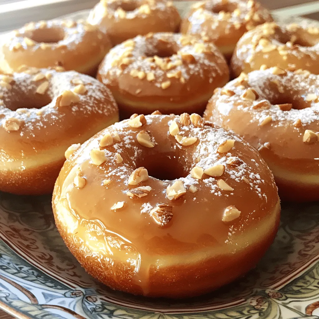 - 2 cups all-purpose flour - 1 cup granulated sugar - 2 teaspoons baking powder - 1/2 teaspoon baking soda - 1/2 teaspoon salt - 1 teaspoon ground cinnamon - 3/4 cup buttermilk - 1/4 cup unsalted butter, melted - 2 large eggs - 1 teaspoon vanilla extract - 1 cup powdered sugar - 1/4 cup pure maple syrup Gather these ingredients before you start. Each one plays a key role in making your donuts tasty and fluffy. Use quality all-purpose flour for the best texture. Granulated sugar adds sweetness, while baking powder and baking soda help the donuts rise. Ground cinnamon adds warmth and flavor. Buttermilk gives a nice tang and moisture. Melted butter adds richness, and eggs bind everything together. Vanilla extract enhances the flavor. For the glaze, powdered sugar and pure maple syrup create that sweet finish. If you want to make these donuts your own, think about adding spices or flavorings. Each ingredient works in harmony to create a delightful treat. - Donut pan - Mixing bowls - Whisk - Piping bag or zip-lock bag Make sure to have the right tools. A donut pan is essential for shaping your donuts. You need mixing bowls for combining ingredients. A whisk helps blend everything smoothly. A piping bag or zip-lock bag makes filling the pan easy. These tools make the process simple and fun. 1. First, preheat your oven to 375°F (190°C). This step is important for even baking. 2. Next, grease your donut pan with non-stick spray. This keeps the donuts from sticking. 1. In a large bowl, combine the dry ingredients. This includes 2 cups of flour, 1 cup of sugar, 2 teaspoons of baking powder, 1/2 teaspoon of baking soda, 1/2 teaspoon of salt, and 1 teaspoon of ground cinnamon. Whisk them together until well mixed. 2. In another bowl, mix the wet ingredients. Use 3/4 cup of buttermilk, 1/4 cup of melted butter, 2 large eggs, and 1 teaspoon of vanilla extract. Stir until the mixture is smooth. 1. Now, pour the wet mixture into the dry ingredients. Gently stir until just combined. Be careful not to over mix; a few lumps are okay. 2. Transfer the batter into a piping bag or a zip-lock bag with a corner cut off. Pipe the batter into the donut pan, filling each cavity about 2/3 full. 3. Bake for 10-12 minutes. Check for doneness by inserting a toothpick; it should come out clean. Let the donuts cool in the pan for 5 minutes before moving them to a wire rack. - Avoiding overmixing: Mix your batter gently. Overmixing makes donuts tough. Stir just until combined. This keeps them light and fluffy. - Ensuring doneness without drying out: Bake for 10-12 minutes. Check with a toothpick. It should come out clean. Don’t leave them in too long. This helps keep them moist and soft. - How to achieve a smooth glaze: Whisk powdered sugar and maple syrup in a bowl. It should be smooth and shiny. If you notice lumps, whisk harder or sift the sugar first. - Adjusting glaze consistency: If your glaze is too thick, add a teaspoon of water. Mix well until it’s just right. You want it to coat the donuts nicely without being runny. - Garnishing options: Add a dusting of powdered sugar on top. Chopped nuts or sprinkles can add a fun touch too. Get creative with your toppings! - Serving suggestions: Arrange the donuts on a pretty plate. Serve them warm for the best taste. They make a great snack or treat for any occasion. {{image_2}} You can change the flavor of your maple glazed donuts with some easy tweaks. For a warm touch, add a pinch of nutmeg or allspice. These spices pair well with the sweet glaze. You can also mix in chocolate chips for a rich twist. If you love fruit, try adding mashed bananas or blueberries to the batter. This adds a fresh taste and makes your donuts even more delicious. If you want a healthier donut, consider using whole wheat flour. This adds fiber and nutrients. You can also swap granulated sugar for a low-sugar option like coconut sugar or use a sugar substitute. This keeps your donuts sweet without all the extra calories. You can still enjoy the yummy flavor while making a healthier choice. For a vegan version of maple glazed donuts, you can easily replace the eggs. Use a flaxseed meal or applesauce to bind the ingredients. Mix one tablespoon of flaxseed meal with three tablespoons of water and let it sit. It acts just like an egg! Instead of buttermilk, use non-dairy milk like almond or soy milk. This way, you can enjoy these tasty treats without eggs or dairy. Store glazed donuts at room temperature in an airtight container. This keeps them fresh. If you have unglazed donuts, you can store them in the same way. They stay soft and tasty. The best time to eat them is within two days. After that, they may lose some flavor and texture. You can freeze these donuts to enjoy later. To freeze, place them in a single layer on a baking sheet. Once they are frozen solid, transfer them to a freezer bag. This helps prevent sticking. They can stay in the freezer for up to three months. When you want to eat them, take out the donuts. Let them thaw at room temperature for about one hour. If you want them warm, you can heat them in the oven at 350°F (175°C) for about 5-7 minutes. This will make them feel fresh again! To make the maple glaze, you need powdered sugar and pure maple syrup. In a small bowl, whisk one cup of powdered sugar and one-fourth cup of maple syrup. Mix until it’s smooth and glossy. If the glaze is too thick, add a teaspoon of water. This gives you the perfect glaze for your donuts. Yes, you can bake these donuts! Just follow the recipe steps. Preheat your oven to 375°F (190°C) and grease a donut pan. Fill the pan with the batter and bake for 10 to 12 minutes. Baking makes them lighter and less greasy but still delicious. Store your maple glazed donuts in an airtight container. Keep them at room temperature for up to two days. If you want them to last longer, put them in the fridge. Just remember to let them come back to room temp before enjoying. You can use pancake syrup, but th