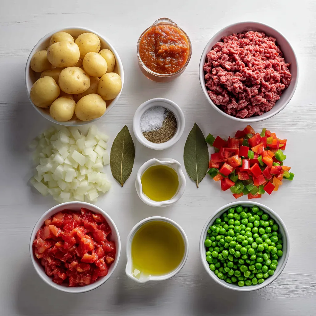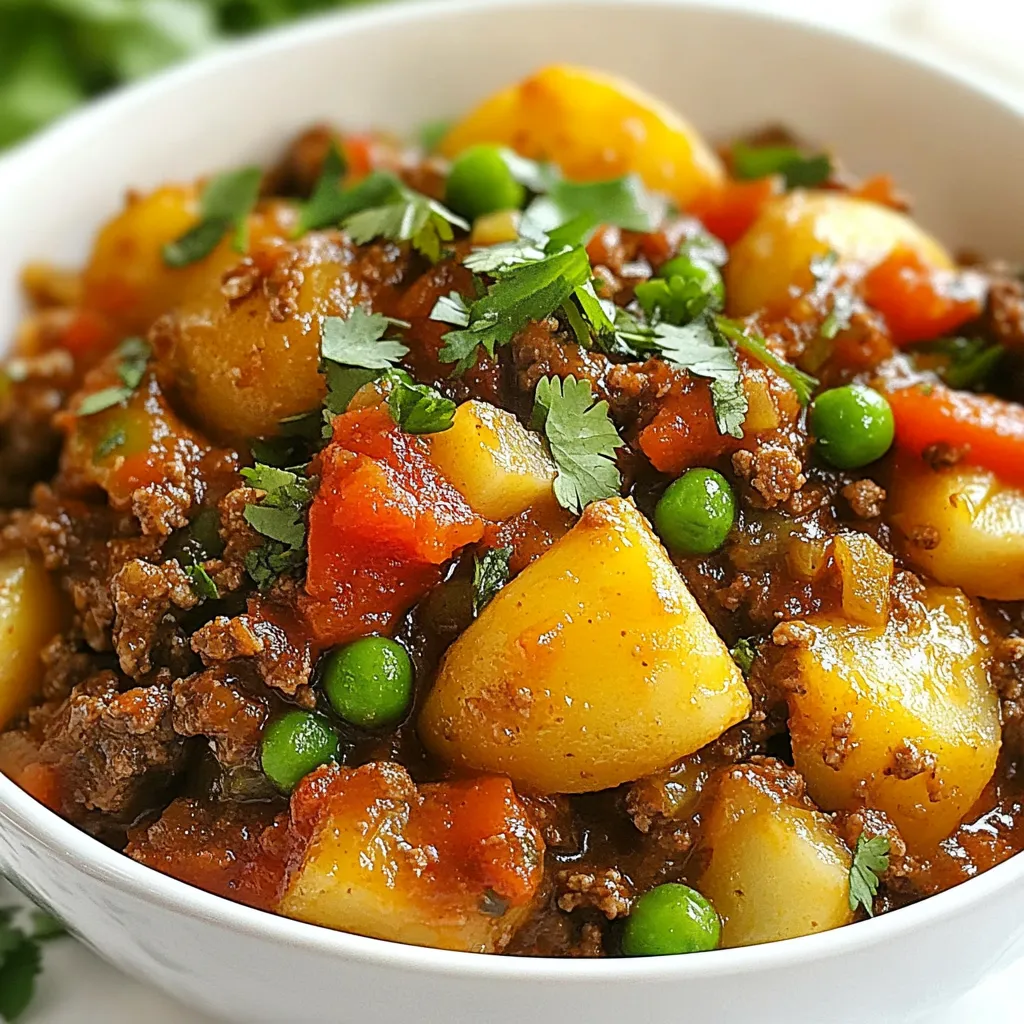 To make Mexican Picadillo with Potatoes, you need: - 1 lb ground beef - 1 medium onion, finely chopped - 2 cloves garlic, minced - 1 medium red bell pepper, chopped - 1 medium green bell pepper, chopped - 2 medium potatoes, diced - 1 cup diced tomatoes (canned or fresh) - 1 cup beef or vegetable broth - 1 teaspoon ground cumin - 1 teaspoon dried oregano - 1 bay leaf - 1 cup frozen peas - Salt and pepper to taste - 2 tablespoons vegetable oil - Fresh cilantro for garnish (optional) You can add more flavor to your picadillo. Some options include: - Chopped carrots for sweetness - Corn for extra texture - Black olives for a briny taste - Jalapeños for heat If you have allergies, here are some swaps: - Use ground turkey or chicken instead of beef. - For a vegetarian option, try lentils or mushrooms. - Use low-sodium broth to cut back on salt. - Choose a gluten-free broth to avoid gluten. {{ingredient_image_1}} First, gather all your ingredients. You need ground beef, onions, garlic, bell peppers, potatoes, and more. Chop the onions and bell peppers finely. Dice the potatoes into small cubes. This helps them cook evenly. 1. Heat the oil: In a large skillet, heat the vegetable oil over medium heat. 2. Sauté onions and garlic: Add the chopped onions and minced garlic. Cook for about 3 minutes until they soften. 3. Cook ground beef: Add the ground beef. Break it up with a spatula. Cook this for 5-7 minutes until it’s brown. Drain any excess fat if needed. 4. Add veggies: Stir in the diced tomatoes, red and green bell peppers. Cook for 5 minutes until the peppers begin to soften. 5. Mix in potatoes and spices: Add the diced potatoes, broth, cumin, oregano, and bay leaf. Season with salt and pepper. 6. Simmer: Bring the mixture to a boil. Then, lower the heat. Cover the skillet and simmer for 20-25 minutes. Stir occasionally until the potatoes are tender. 7. Add peas: Finally, stir in the frozen peas. Cook for another 5 minutes until they are heated through. 8. Finish: Remove the bay leaf before serving. Adjust seasoning if needed. - Cut the potatoes into small, even cubes. This ensures they cook at the same rate. - Stir the mixture occasionally while it cooks. This helps prevent sticking and promotes even cooking. - Let the dish sit for a few minutes after cooking. This allows the flavors to meld together better. Enjoy your Mexican Picadillo with Potatoes! Serve it warm for a hearty meal. When making Mexican Picadillo, avoid overcooking the beef. Cook it just until it's brown. Don't skip the salt and pepper; they enhance the flavor. If you add too much liquid, the dish can become soupy. Be careful with the amount of broth you use. Lastly, remember to remove the bay leaf before serving. It adds flavor but isn’t meant to be eaten. To boost flavor, try adding a splash of lime juice. This brightens the dish. Fresh herbs can also lift the taste. Consider adding fresh cilantro or parsley at the end. If you like heat, add some diced jalapeños. For a smoky flavor, a dash of chipotle powder works well. You can also mix in olives or raisins for a sweet twist. You will need a large skillet for cooking. A spatula helps to break up the meat. Use a sharp knife and cutting board for chopping vegetables. A measuring cup is handy for broth and tomatoes. If you have one, a lid is great for simmering. Finally, a serving spoon helps you dish it out nicely. Pro Tips Use Fresh Ingredients: Whenever possible, opt for fresh vegetables and herbs to enhance the flavor and nutritional value of your picadillo. Adjust Spice Levels: Feel free to add a pinch of chili powder or cayenne pepper if you prefer a spicier dish. Adjust according to your taste. Let It Rest: Allow the picadillo to rest for a few minutes after cooking. This helps the flavors meld together for a more delicious result. Bulk It Up: For a heartier meal, consider adding additional veggies like carrots or zucchini. They complement the dish well and add more texture. {{image_2}} You can make a great vegetarian picadillo. Instead of ground beef, use lentils or mushrooms. Cook them until they are soft and flavorful. Replace the beef broth with vegetable broth. This keeps the taste rich and hearty. You can add more veggies like carrots or zucchini for extra nutrition. Picadillo changes by region in Mexico. In some areas, they add raisins or olives for sweetness and depth. Others might use different spices, like cinnamon or cloves, to change the flavor. You may find that some regions favor more tomatoes or potatoes. Each variation tells a story of the local culture and tastes. Picadillo pairs well with many sides. Serve it with warm tortillas for a classic touch. You can also enjoy it with fluffy rice to soak up the sauce. A fresh salad with lime vinaigrette can brighten the meal. For a heartier option, add refried beans or guacamole on the side. These sides will enhance your dining experience and make it more satisfying. To keep your Mexican Picadillo fresh, store it in an airtight container. Let it cool down before sealing. Place it in the fridge for up to three days. This dish tastes even better the next day, as the flavors meld together. You can freeze Mexican Picadillo for later. Use freezer-safe bags or containers. Make sure to label them with the date. It can last up to three months in the freezer. Thaw in the fridge overnight before reheating. Reheat your Picadillo on the stove for best results. Add a splash of broth or water to keep it moist. Heat it over low to medium heat, stirring often. You can also microwave it in short bursts, stirring in between. Enjoy it warm with tortillas or rice! Yes, you can use chicken or turkey in place of beef. Both options work well. Ground chicken or turkey will add a lighter taste. You may need to adjust cooking times. Make sure the meat is cooked through. The spices and flavors will still shine through. To add heat, use chopped jalapeños or serrano peppers. You can also add a pinch of cayenne pepper. If you like,