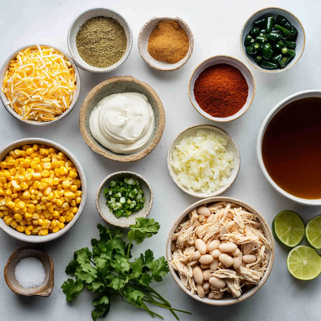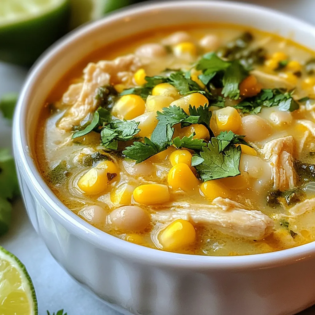 A flavorful and creamy chili featuring shredded chicken, corn, and white beans, inspired by Mexican street corn.