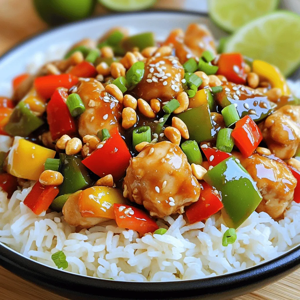 Serve your Min Kung Pao Chicken over jasmine rice. The rice absorbs the sauce well. Garnish with extra roasted peanuts for crunch. A drizzle of sesame oil adds a nice finish. Add lime wedges on the side. The lime gives a fresh taste that brightens the dish. Use a colorful plate to make your meal pop. Enjoy your delicious creation with family or friends!