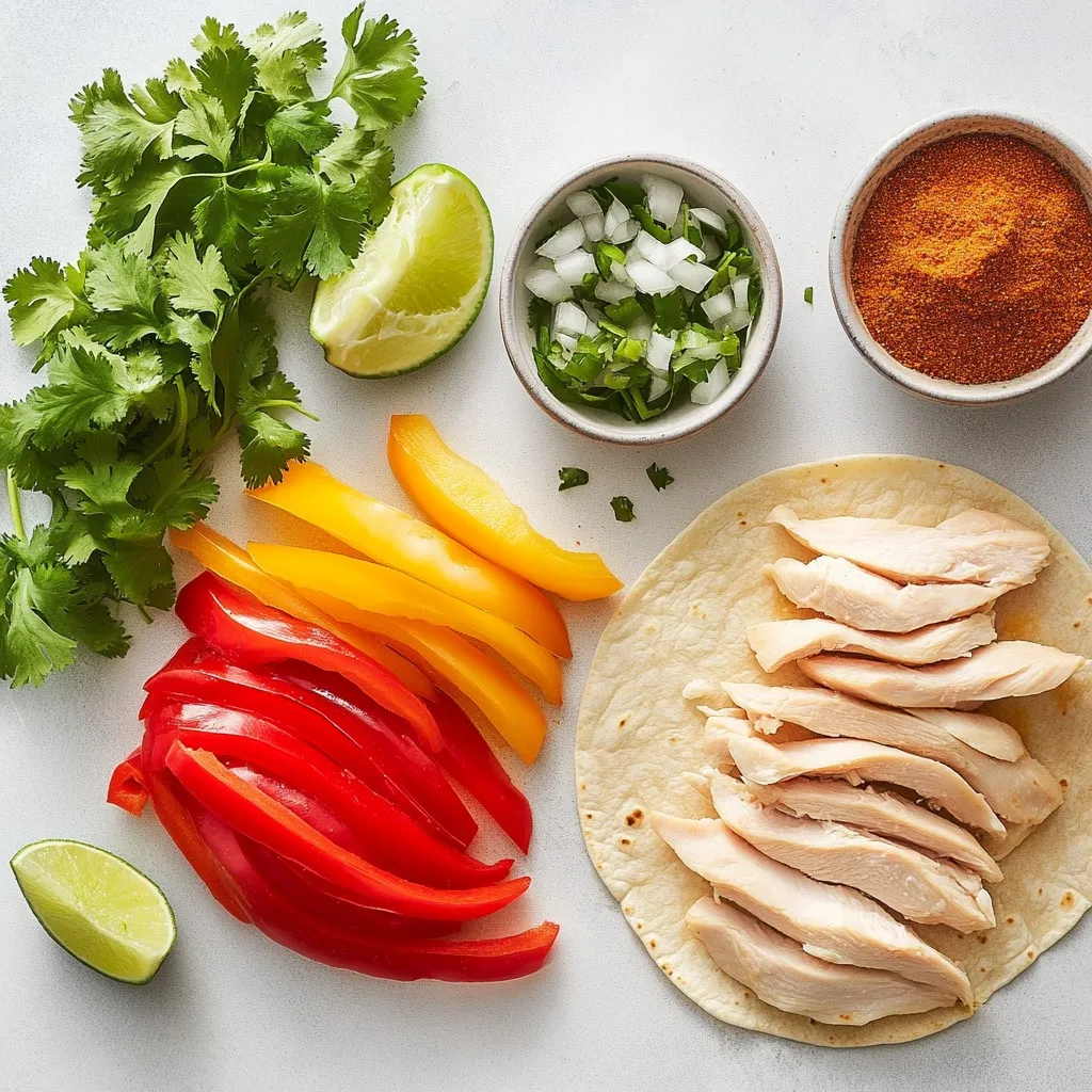 To make Minute Chicken Fajitas, you need a few key ingredients: - 1 lb (450g) boneless, skinless chicken breast, thinly sliced - 1 tablespoon olive oil - 1 bell pepper (red or green), sliced - 1 medium onion, sliced - 1 teaspoon chili powder - 1 teaspoon cumin - 1 teaspoon garlic powder - Salt and pepper to taste - 4 small flour tortillas These ingredients form the base of your fajitas. The chicken brings protein, while the bell pepper and onion add crunch and flavor. You can enhance your fajitas with these extras: - Fresh cilantro, chopped (for garnish) - Lime wedges (for serving) Cilantro gives a fresh touch. Lime adds a zesty kick. You can also try avocado, salsa, or sour cream for more variety. If you lack any ingredients, don’t worry! Here are some easy swaps: - Use chicken thighs instead of chicken breast for more flavor. - Swap olive oil for vegetable oil or butter. - Any color bell pepper works. You can even mix colors! - For spices, use taco seasoning if you have it. These substitutions keep your meal tasty while using what you have on hand. Enjoy your cooking! {{ingredient_image_1}} 1. Heat one tablespoon of olive oil in a large skillet over medium-high heat. 2. Add one pound of thinly sliced chicken to the skillet. Season it with chili powder, cumin, garlic powder, salt, and pepper. Cook it for 3-4 minutes. Stir occasionally until the chicken is no longer pink. 3. Next, add one sliced bell pepper and one sliced onion to the skillet. Sauté for another 2-3 minutes. The veggies should be tender but crisp. 4. Remove the skillet from the heat. Warm four small flour tortillas in a dry pan for about 30 seconds on each side. - Use thin slices of chicken. This helps it cook faster and evenly. - Make sure your skillet is hot before adding the chicken. This gives it a nice sear. - Stir the chicken only a few times. This lets it brown without steaming. - Always check that the chicken is fully cooked. It should have no pink spots inside. 1. Take a warm tortilla and place a portion of the chicken and veggie mix in the center. 2. Top it with chopped cilantro and a squeeze of fresh lime juice. 3. Fold the tortilla over the filling, making sure it's secure. 4. Serve right away with lime wedges on the side for added zest. Enjoy your tasty fajitas! To boost flavor, use fresh spices. Fresh herbs add a bright taste. I love adding lime juice; it gives a nice zing. You can also marinate the chicken in spices for at least 30 minutes. This step helps the flavors sink in. If you like heat, add sliced jalapeños to the mix. Their heat balances well with sweet peppers. One big mistake is overcooking the chicken. It should be cooked just until no longer pink, about 4 minutes. If you cook too long, it can dry out. Another mistake is not seasoning enough. Don't skip the salt and pepper; they make a big difference. Lastly, don’t crowd the skillet. This can cause steaming instead of a nice sear. For these fajitas, you need a large skillet. A non-stick skillet works well for easy cleanup. A sharp knife and cutting board are key for slicing the chicken and veggies. Use a spatula to stir and flip. I also recommend having a zester for the lime. It helps get the zest without bitterness. Pro Tips Marinate for More Flavor: If you have extra time, marinate the chicken in lime juice, garlic, and spices for at least 30 minutes before cooking. This enhances the flavors and makes the chicken more tender. Use a Hot Skillet: Make sure your skillet is hot before adding the chicken. This ensures a nice sear and keeps the chicken juicy, preventing it from stewing in its juices. Customize Your Veggies: Feel free to mix in other vegetables like zucchini, mushrooms, or corn. This not only adds flavor but also increases the nutritional value of your fajitas. Warm Tortillas Properly: Instead of just warming tortillas in a dry pan, consider wrapping them in foil and placing them in a warm oven for a few minutes. This keeps them soft and pliable. {{image_2}} You can easily make a vegetarian version of fajitas. Instead of chicken, use hearty veggies. Try bell peppers, zucchini, and mushrooms. These add great flavor and texture. You can also use tofu or tempeh for protein. Season them just like the chicken. Use chili powder, cumin, and garlic powder. Cook them until they are tender. Serve on warm tortillas with fresh cilantro and lime. Want some heat? Add more spice to your chicken fajitas. Increase the chili powder to 1.5 teaspoons. You can also add sliced jalapeños for extra kick. If you love heat, try using a spicy salsa as a topping. This will make your fajitas burst with flavor. Remember, adjust the spiciness to your taste. Always keep lime wedges handy to balance the heat. There are many ways to cook your fajitas. You can grill the chicken and veggies for a smoky flavor. Just marinate them in the same spices before grilling. If you prefer, use an air fryer. Cook the chicken at 375°F for around 10 minutes. Then toss in the veggies for another 3-4 minutes. You can also use a slow cooker. Cook chicken and veggies with spices for about 4 hours on low. This makes them super tender and full of flavor. Each method gives a unique taste and feel to your fajitas. To store leftover fajitas, let them cool first. Place them in an airtight container. You can keep them in the fridge for up to three days. Make sure to separate the chicken and veggies from the tortillas. This will help keep them fresh. When you want to enjoy your leftovers, reheat them in a skillet. Heat on medium for about five minutes. Stir often to avoid burning. You can also microwave them. Use a microwave-safe plate and cover the fajitas with a damp paper towel. Heat in short bursts until warm. If you want to freeze fajitas, wrap the filling tightly. Use plastic wrap or foil. Place them in a freezer-safe bag. You can freeze the filling for up to three months. When you're ready to eat, thaw in the fridge overnight. Reheat as mentioned before. Avoid freezing the tortil