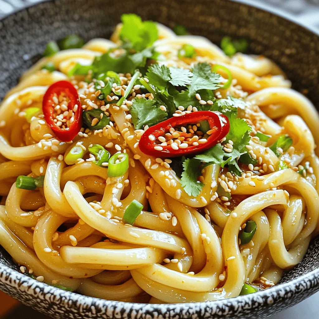 Serve your udon in a nice bowl. Top with green onions and sesame seeds. You can also add fresh cilantro for a bright taste. Pair it with a side of steamed veggies or a light salad for a full meal.