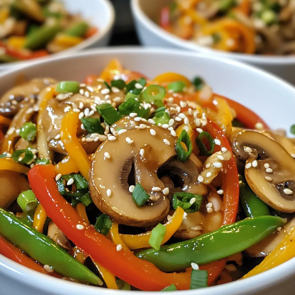 Pair your mushroom stir-fry with steamed rice or quinoa. Both are great at soaking up the sauce. For a fun twist, serve it in deep bowls. Top it with extra sesame seeds and green onions. This adds color and texture. You can also add a side of spring rolls for crunch. Enjoy your meal with friends or family for a delightful dining experience.