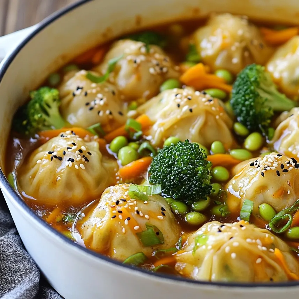 - Frozen dumplings (16 oz package) - Broccoli florets (2 cups) - Shredded carrots (1 cup) - Edamame (1 cup shelled) - Chicken or vegetable broth (4 cups) - Soy sauce (1 tablespoon) - Sesame oil (1 teaspoon) - Minced garlic (2 cloves) - Grated ginger (1-inch piece) - Green onions (for garnish) - Sesame seeds (for garnish) To create the One-Pan Viral Dumpling Bake, you need some simple yet tasty ingredients. Start with a package of frozen dumplings. You can pick chicken, vegetable, or your favorite filling. Next, grab fresh broccoli florets for crunch and color. Shredded carrots add sweetness and a pop of orange. Edamame gives a nice protein boost. For the broth, you will need four cups of either chicken or vegetable broth. Add one tablespoon of soy sauce for saltiness and flavor. A teaspoon of sesame oil adds a lovely nutty taste. Don’t forget the aromatics! Minced garlic and grated ginger boost the dish's flavor. Lastly, sprinkle green onions and sesame seeds on top for a beautiful finish. These ingredients come together to create a warm and satisfying meal. {{ingredient_image_1}} - Preheat the oven to 400°F (200°C). - In a large oven-safe skillet, add 4 cups of chicken or vegetable broth, 1 tablespoon of soy sauce, 1 teaspoon of sesame oil, 2 cloves of minced garlic, and 1-inch piece of grated ginger. Stir to mix well. Start heating this mixture on medium. You want it to simmer gently. This base gives great flavor to the whole dish. - Carefully add 1 package (16 oz) of frozen dumplings into the skillet. - Make sure they are mostly submerged in the broth. - Next, scatter 2 cups of broccoli florets, 1 cup of shredded carrots, and 1 cup of shelled edamame over the dumplings. This colorful mix adds nutrition and texture. - Now, transfer the skillet to the oven. - Bake for 25-30 minutes. Keep an eye on it during the last few minutes. You want the dumplings cooked through and the veggies tender. The kitchen will smell amazing! When picking frozen dumplings, go for quality brands. Look for dumplings with fresh fillings. Chicken and vegetable dumplings work best here. Arrange the dumplings carefully in the pan. Keep them mostly submerged in the broth. This helps them cook evenly. Avoid overcrowding, which can cause sticking and uneven cooking. To spice up the broth, add a splash of chili oil or sriracha. This adds heat without overpowering the dish. You can also mix in a tablespoon of miso for depth. For garnishes, consider adding chopped cilantro or fresh basil. These herbs brighten the dish. You can also use crushed red pepper flakes for added zing. Oven temperatures can vary. If your oven runs hot, check the dumplings at 25 minutes. If your oven runs cool, you may need to bake them longer. To know when your dumplings and veggies are done, look for a golden color. The dumplings should be puffed up and the veggies tender. A fork should easily pierce the vegetables. Pro Tips Use Fresh Ingredients: Whenever possible, opt for fresh vegetables instead of frozen ones to enhance the flavor and texture of your dish. Broth Choices: Experiment with different types of broth, such as miso or spicy chicken broth, to add unique flavors to the dumpling bake. Customize Your Fillings: Feel free to mix and match different types of dumplings, such as pork or shrimp, for a varied taste experience. Garnish Generously: Don't skip the green onions and sesame seeds; they add not only flavor but also a beautiful presentation to your dish. {{image_2}} You can swap out the broccoli, carrots, and edamame for other veggies. Try snap peas, bell peppers, or mushrooms. These options add color and flavor. Seasonal veggies work great too. Use zucchini in summer or squash in fall. This keeps your dish fresh and exciting. Feel free to use different dumplings. Pork or shrimp dumplings bring new tastes. You can also try meat alternatives like lentil or chickpea dumplings. For extra protein, add cooked chicken or tofu. Both blend well with the broth and veggies. This makes the dish heartier. If you're gluten-free, use gluten-free dumplings and soy sauce. Check the labels to be safe. For a vegan twist, use vegetable broth and plant-based dumplings. You can add more veggies to make it filling. These adaptations help everyone enjoy the dish. To keep your One-Pan Viral Dumpling Bake fresh, store it in the fridge. Place the leftovers in an airtight container. This helps keep the dish from drying out. Use a glass or plastic container with a tight lid. The dish can stay fresh for up to three days in the fridge. When it's time to eat your leftovers, you can reheat them easily. Use a microwave-safe dish for quick heating. Cover it with a lid or microwave-safe wrap. Heat for about 2-3 minutes, then check if it's warm. If you want to bake it, place it in an oven-safe dish. Set your oven to 350°F (175°C) and bake for about 15 minutes. This method helps keep the dumplings soft and the veggies crisp. If you want to save some for later, you can freeze the dish. Let it cool completely before freezing. Transfer it to a freezer-safe container. Be sure to leave some space for expansion. The dish can stay frozen for up to three months. When you're ready to eat, thaw it in the fridge overnight. For cooking from frozen, you can bake it at 375°F (190°C) for about 45-50 minutes. Check that it's hot all the way through before serving. Yes, you can use fresh dumplings. Fresh dumplings need less cooking time. You should add them to the broth just before baking. This way, they will cook properly. Make sure to check if they float. Floating means they are ready. To add heat, try a few options. You can use chili flakes or hot sauce. Mix these into the broth before baking. Another choice is to add sliced fresh chilies on top. You can also use spicy dumplings if you prefer. This dish pairs well with many sides. Try serving it with a simple salad. A cucumber salad adds a nice crunch. You can also serve rice or quinoa for a filling meal. Steamed vegetables 