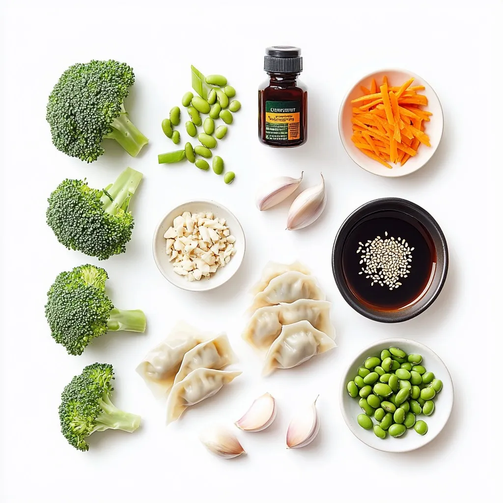 To create the One-Pan Viral Dumpling Bake, you need some simple yet tasty ingredients. Start with a package of frozen dumplings. You can pick chicken, vegetable, or your favorite filling. Next, grab fresh broccoli florets for crunch and color. Shredded carrots add sweetness and a pop of orange. Edamame gives a nice protein boost.