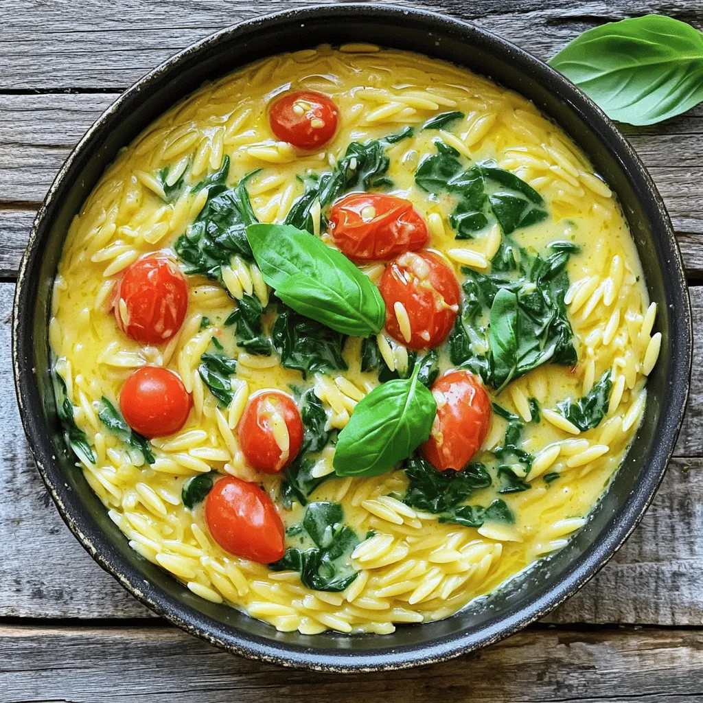 The main ingredients for this dish come together to create a rich and creamy meal. Orzo is small and cooks quickly. It absorbs flavors well, making it perfect for this recipe. Olive oil adds a nice depth of flavor, while garlic gives a warm aroma. Vegetable broth keeps the dish light and adds richness. Heavy cream makes it creamy and luxurious, and Parmesan cheese brings in a salty kick.