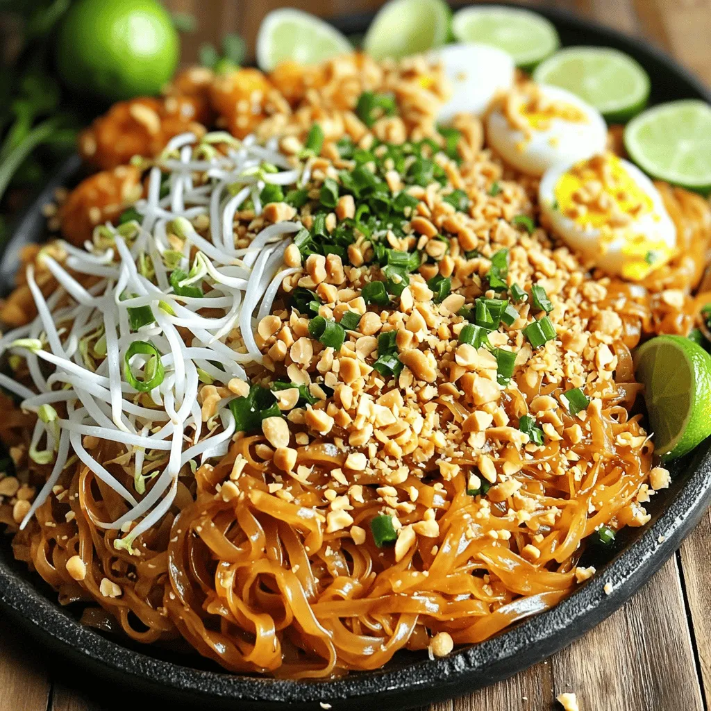 For garnish, green onions provide freshness. Crushed peanuts add a lovely crunch. Lime wedges give a bright finish. These touches elevate your dish, making it look and taste amazing. Enjoy the process of cooking Pad Thai. It’s simple yet rewarding!