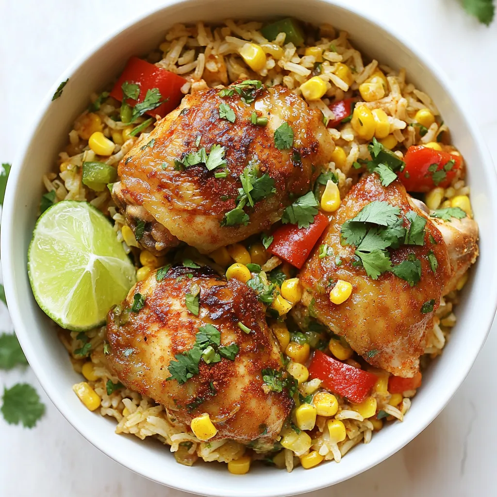 - 1 lb boneless, skinless chicken thighs, diced - 1 cup brown rice, rinsed - 2 cups chicken broth - 1 cup salsa verde - 1 cup corn kernels (fresh or frozen) - 1 red bell pepper, diced - 1 small onion, chopped - 2 cloves garlic, minced These main ingredients create a hearty base for your dish. The chicken thighs add rich flavor and tenderness. Rinsing the brown rice helps remove excess starch, leading to a better texture. Salsa verde brings a zesty kick that ties everything together. - 1 teaspoon cumin - 1 teaspoon chili powder - ½ teaspoon salt - ½ teaspoon pepper - 2 tablespoons olive oil These seasonings add depth to the dish. Cumin gives a warm, earthy tone, while chili powder adds a nice heat. The olive oil not only helps cook the chicken but also enhances the flavors of the other ingredients. - Fresh cilantro, chopped - 1 lime, cut into wedges Garnishing with cilantro adds a fresh, bright note. Lime wedges provide a zesty pop when squeezed over the dish. These garnishes enhance the flavor and make your meal look beautiful. Enjoy your cooking! {{ingredient_image_1}} Start by heating 2 tablespoons of olive oil in a large skillet over medium heat. Dice 1 pound of boneless, skinless chicken thighs into small pieces. This cut is juicy and perfect for our dish. Season the chicken with ½ teaspoon of salt, ½ teaspoon of pepper, 1 teaspoon of cumin, and 1 teaspoon of chili powder. Add the chicken to the hot skillet. Sauté for about 5 to 7 minutes, cooking until the chicken is browned and cooked through. Next, add 1 small chopped onion, 1 diced red bell pepper, and 2 minced garlic cloves to the skillet. Cook these for about 3 to 4 minutes until the veggies soften and smell great. You want to mix all the flavors together. After that, pour in 1 cup of rinsed brown rice. Stir well so the rice gets coated with the chicken and veggies. This step adds a nice texture to the dish. Now, pour in 2 cups of chicken broth and 1 cup of salsa verde. Stir everything well. Bring the mix to a boil. Once it boils, reduce the heat to low and cover the skillet. Let it simmer for about 30 minutes or until the rice is tender and absorbs most of the liquid. After 30 minutes, add 1 cup of corn kernels, stirring gently to combine. Cover and let it cook for another 5 minutes. Finally, remove from heat and let it sit for a couple of minutes. Fluff the rice with a fork, and garnish with fresh chopped cilantro. Serve with lime wedges for a zesty touch. Enjoy your hearty meal! To get tender chicken, use boneless, skinless thighs. They stay juicy and cook fast. When you season the chicken, use salt, pepper, cumin, and chili powder. Cook on medium heat. Sauté the chicken for about 5 to 7 minutes. Make sure it's browned and cooked through. This helps lock in moisture. For the best rice, rinse brown rice before using it. Rinsing removes extra starch. This helps the rice cook evenly. When adding the rice to the skillet, stir it well with the chicken and veggies. Pour in chicken broth and salsa verde. Bring it to a boil, then lower the heat. Cover the skillet, and let it simmer for about 30 minutes. This lets the rice absorb all the flavors. You can enhance the dish by adding more spices. Try adding garlic powder or onion powder for extra taste. A dash of smoked paprika adds a nice smoky flavor. If you like heat, add some cayenne pepper or red pepper flakes. Always taste as you go. Adjust spices to match your taste. Pro Tips Use Fresh Ingredients: Fresh chicken and vegetables enhance the flavor of your dish significantly. Whenever possible, opt for fresh produce for the best taste. Adjust Spice Levels: If you prefer a spicier dish, consider adding diced jalapeños or a pinch of cayenne pepper to the skillet along with the spices. Let It Rest: After cooking, let the skillet sit covered for a few minutes before serving. This allows the flavors to meld and the rice to finish cooking in the residual heat. Experiment with Toppings: Top your dish with avocado slices, crumbled queso fresco, or a dollop of sour cream for added richness and flavor. {{image_2}} You can switch proteins in this dish. Tofu is a great option for a plant-based meal. Use firm tofu, and press it to remove excess water. Cut it into cubes and sauté it just like the chicken. For beef lovers, try diced flank steak. Cook it until it’s brown, and follow the same steps for the chicken. Both options work well with the flavors of the salsa verde. To make this dish vegetarian or vegan, leave out the chicken and use vegetable broth. Replace the meat with beans, like black beans or chickpeas. They add protein and texture. You can also add extra spices for flavor depth. This way, you keep the dish hearty and satisfying without meat. Boost the nutrition in your Salsa Verde Chicken Rice Skillet by adding more veggies. Try adding spinach or kale for some greens. You can also toss in zucchini or carrots for added color and taste. Just chop them up and add them with the other veggies. Cooking them makes them soft and yummy. Extra veggies not only add nutrients but also make the dish more vibrant and appealing. You can store leftovers in an airtight container. Make sure to cool the dish first. It stays fresh for up to three days. Label the container with the date. This helps you keep track of freshness. To freeze, let the dish cool completely. Then, use a freezer-safe container. It is best to portion the meal for easy reheating. The Salsa Verde Chicken Rice Skillet can last up to three months in the freezer. To reheat, you can use the microwave or stovetop. If using a microwave, heat in short bursts. Stir in between to avoid hot spots. If on the stovetop, add a splash of broth to keep it moist. Cook over low heat until warm. Enjoy your meal! Yes, you can use white rice instead of brown rice. White rice cooks faster than brown rice. If you choose white rice, reduce the cooking time. You may need about 20 minutes instead of 30. Ensure the rice is tender and absorbs the liqu