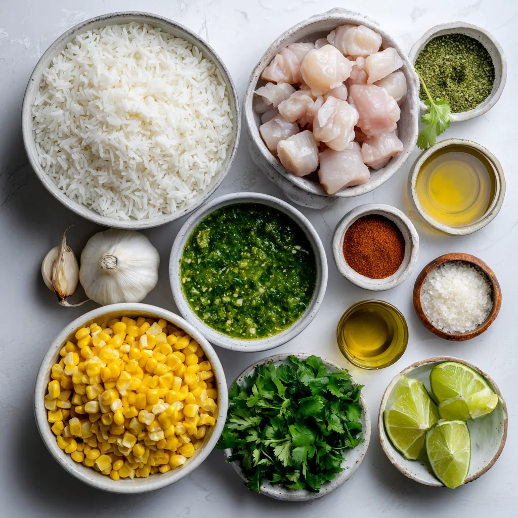 In this dish, I use boneless, skinless chicken thighs because they stay juicy. The white rice acts as a base and soaks up all the flavors. Salsa verde brings a tangy kick that brightens the meal.