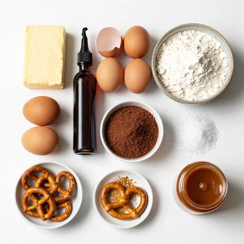 - 1 cup unsalted butter (2 sticks) - 1 cup granulated sugar - 1 cup brown sugar, packed - 4 large eggs - 1 teaspoon vanilla extract - 1 cup all-purpose flour - 1 cup cocoa powder - 1 teaspoon baking powder - 1/2 teaspoon salt - 1 cup crushed pretzels - 1 cup salted caramel sauce (store-bought or homemade) - Flaky sea salt, for topping For the best flavor, use high-quality unsalted butter. It gives the brownies a rich taste. Brown sugar adds moisture, while granulated sugar helps with the crust. Use fresh eggs for a fluffy texture. The cocoa powder should be unsweetened for a deep chocolate flavor. - For sugar, you can use coconut sugar or honey. Adjust the amounts as honey is sweeter. - For gluten-free options, replace all-purpose flour with almond flour or a gluten-free blend. This change may alter texture, but the flavor stays great. - A 9x13 inch baking pan is ideal for these brownies. - You will need mixing bowls for wet and dry ingredients. - A whisk for mixing eggs, and measuring cups for precise amounts. - A spatula helps to fold in ingredients smoothly. This equipment makes baking easier and ensures your brownies come out just right. {{ingredient_image_1}} Set your oven to 350°F (175°C). This helps the brownies bake evenly. Grease a 9x13 inch baking pan. You can also line it with parchment paper. This makes removal easy later. 1. Start by melting the unsalted butter. Use the microwave or stovetop. Let it cool for a bit. 2. In a large bowl, whisk the cooled butter with granulated and brown sugar. Mix until smooth. 3. Add the eggs one by one. Mix well after each egg. Then, stir in the vanilla extract. 4. In another bowl, sift flour, cocoa powder, baking powder, and salt. 5. Gradually mix the dry ingredients into the wet mixture. Stir gently. Do not overmix. 6. Fold in the crushed pretzels. Save some pretzels for topping later. 1. Pour half of the brownie batter into the prepared pan. Spread it evenly. 2. Drizzle half of the salted caramel sauce over the batter. 3. Add the rest of the brownie batter on top. Spread it to cover the caramel. 4. Drizzle the remaining salted caramel sauce over this layer. 5. Sprinkle the reserved pretzel pieces on top. 6. Use a knife or toothpick to swirl the caramel into the brownie batter. This creates a marbled effect. 7. Bake for 25-30 minutes. Check for doneness with a toothpick. It should come out with moist crumbs. 8. After baking, sprinkle flaky sea salt over the brownies while they are warm. 9. Let the brownies cool in the pan for at least 30 minutes before cutting. - To check for doneness, poke the center with a toothpick. It should have moist crumbs. - Avoid overbaking by setting a timer for 25 minutes. Check early to be safe. - Try adding chocolate chips or nuts for extra texture. - Explore flavored caramel sauces, like vanilla or chocolate, for a twist. - Serve the brownies warm for the best taste. - Pair them with coffee, vanilla ice cream, or whipped cream for a treat. Pro Tips Use Room Temperature Eggs: Allow your eggs to sit at room temperature for about 30 minutes before mixing them into the batter. This helps create a smoother and more uniform mixture, resulting in fudgier brownies. Don’t Overmix: When combining your dry and wet ingredients, mix until just combined. Overmixing can lead to tough brownies, so a few lumps are perfectly fine! Swirl with Care: When swirling the caramel into the brownie batter, use a gentle hand to create a marbled effect without completely blending it in. This will enhance both the flavor and appearance of your brownies. Cool Before Cutting: Allow the brownies to cool completely in the pan before cutting into squares. This helps them set properly and makes for cleaner cuts. {{image_2}} You can make these brownies your own by adding fun ingredients. Try mixing in chopped nuts like walnuts or pecans. They give a nice crunch. You could also add chocolate chips for extra sweetness. Dark chocolate chips work well if you like a richer taste. For seasonal flavors, think about using peppermint extract in winter. In summer, add fresh berries for a fruity touch. You can even switch the caramel for a fruity sauce, like raspberry or strawberry. If you're looking to cut calories, you can reduce the sugar. Use half the amount of granulated sugar and brown sugar. You can also swap out some butter for unsweetened applesauce. This helps keep the brownies moist without all the calories. For those who want vegan options, replace the eggs with flaxseed meal or applesauce. Use coconut oil instead of butter. Make sure to choose a dairy-free caramel sauce for a fully plant-based treat. Want more or fewer brownies? You can easily scale this recipe. Simply double the ingredients for a big batch. You could also cut the recipe in half for a smaller treat. Mini brownies are another fun idea. Use a mini muffin pan to bake bite-sized brownies. Just watch the time and check for doneness. They will bake faster than regular brownies. Enjoy experimenting with these variations! To keep your salted caramel pretzel brownies fresh, store them in an airtight container. This helps prevent them from drying out. Place parchment paper between layers if you stack them. This way, they stay soft and tasty. You can freeze brownies for later enjoyment. First, let them cool completely. Then, wrap each brownie in plastic wrap. Place the wrapped brownies in a freezer-safe bag. For thawing, leave them in the fridge overnight or at room temperature for a few hours. This keeps their nice, chewy texture. At room temperature, your brownies last about four to five days. If you keep them in the fridge, they last longer but can lose some flavor and texture. Enjoy them fresh for the best taste! Yes, you can make these brownies ahead of time. Here are some tips: - Bake the brownies and let them cool completely. - Cut them into squares for easy serving. - Store them in an airtight container at room temperature. - If you want them to stay fresh longer, refrigerate 