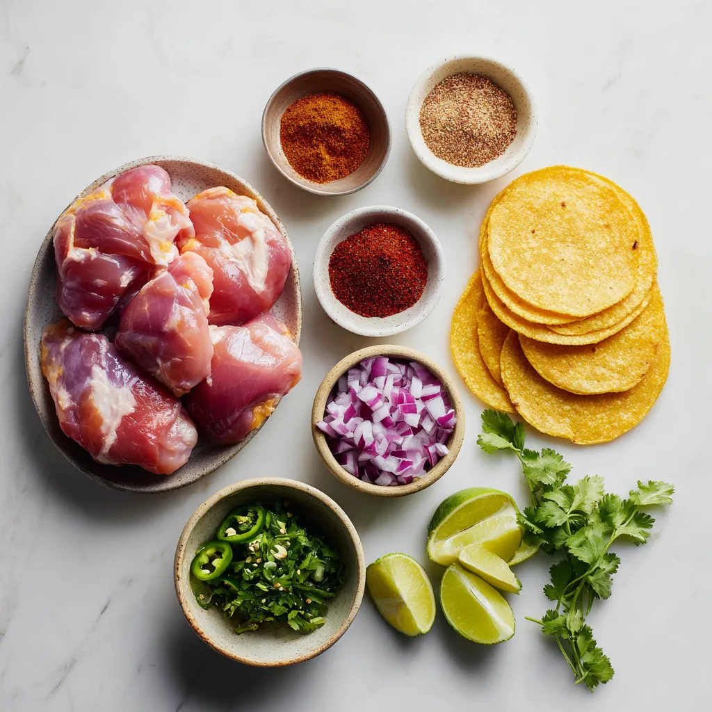 To make these tacos, start with the chicken thighs. I like thighs because they are juicy. They stay moist even when cooked. You can also use chicken breasts, but thighs work best for flavor.