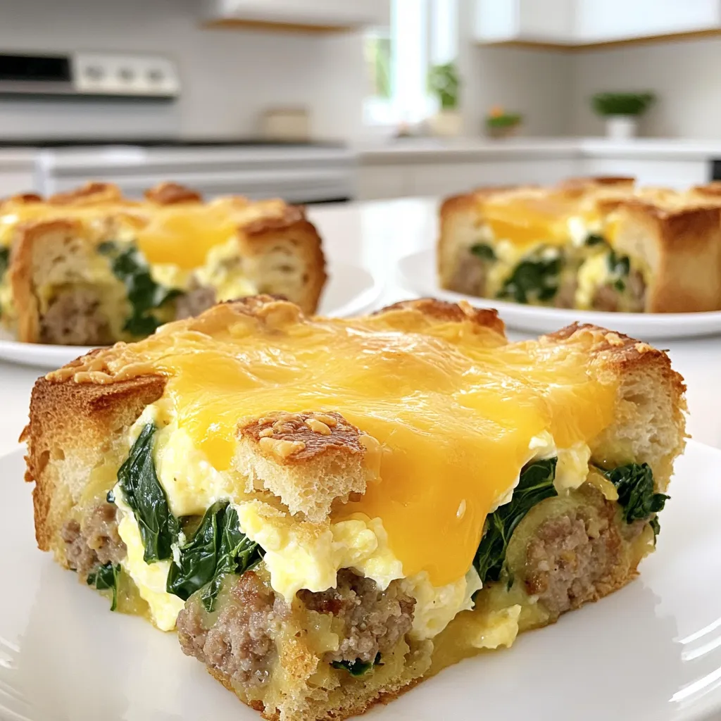 Each item plays a role in creating a hearty and tasty dish. The sausage adds rich flavor, while the spinach brings freshness. Eggs and milk form the creamy base. Bread absorbs all those wonderful flavors. Cheddar and Parmesan give a cheesy finish that you will love.