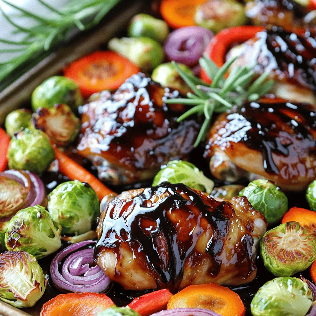 You can swap chicken thighs for chicken breasts if you prefer. Chicken breasts will cook faster, so check them early. If you want a different taste, try using turkey thighs. For veggies, you can easily replace Brussels sprouts with green beans or broccoli. Use seasonal veggies for the best flavor. As for the balsamic vinegar, apple cider vinegar works well, too, for a tangy twist.