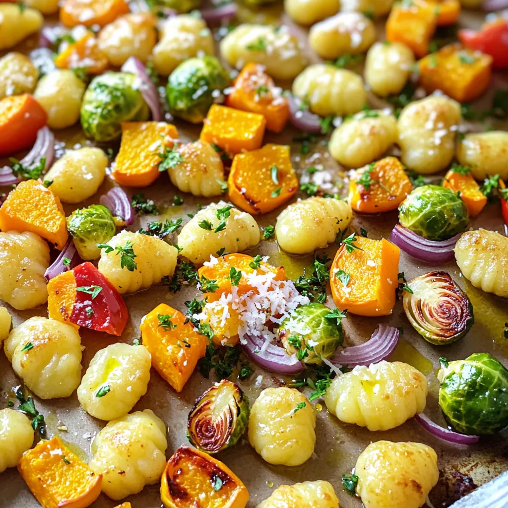 - 1 pound shelf-stable gnocchi - 1 medium butternut squash, peeled and cubed - 2 cups Brussels sprouts, trimmed and halved - 1 red bell pepper, diced - 1 red onion, sliced - 3 tablespoons olive oil - 2 teaspoons dried thyme - 1 teaspoon garlic powder - Salt and pepper to taste - ¼ cup grated Parmesan cheese - Fresh parsley, chopped for garnish Gather these simple ingredients before you start. The gnocchi brings a soft base, while the butternut squash adds a sweet touch. Brussels sprouts give a nice crunch, and the red bell pepper and onion add color and flavor. The olive oil and dried thyme tie everything together, making it rich and aromatic. Don’t forget the Parmesan cheese for a cheesy finish! You can easily find all these items at your local grocery store. They are perfect for a cozy fall meal. 1. Preheat the oven and prepare the baking sheet Start by preheating your oven to 425°F (220°C). This high heat helps the gnocchi and veggies get crispy. Line a large baking sheet with parchment paper. This makes cleanup easy and helps the food not stick. 2. Combine vegetables with seasonings and oil In a large bowl, add the cubed butternut squash, halved Brussels sprouts, diced red bell pepper, and sliced red onion. Drizzle in 2 tablespoons of olive oil. Add the dried thyme, garlic powder, salt, and pepper. Toss everything well until the veggies are fully coated. This mix of flavors will make your dish pop. 1. Incorporate gnocchi into the mixture Now, add 1 pound of shelf-stable gnocchi to your veggie mix. Gnocchi adds a chewy texture that balances the crispy veggies. 2. Ensure even coating with olive oil Drizzle the remaining tablespoon of olive oil over the gnocchi and veggies. Toss again to make sure everything is mixed well. This step is key to getting that crispy finish. 1. Spread mixture on baking sheet Pour the mixture onto your prepared baking sheet. Spread it out evenly in a single layer. This helps everything cook properly and get crispy. 2. Baking time and stirring guidelines Bake it all in the preheated oven for 25-30 minutes. Halfway through, take a spatula and stir the mixture. This ensures even cooking. You want the gnocchi to be golden brown and the veggies to be tender. If you like, add grated Parmesan cheese for the last 2-3 minutes of baking to melt it over the top. To get that perfect crispiness, it’s key to spread the mixture in a single layer on the baking sheet. This allows hot air to circulate around each piece. If the gnocchi and veggies are too close together, they will steam instead of crisp. For baking time, you can adjust it based on your oven. If your oven runs cool, add a few extra minutes. Aim for a golden brown color on the gnocchi and tender vegetables. Stir halfway through to ensure even cooking. To boost flavor, consider adding fresh herbs like rosemary or sage. A pinch of smoked paprika can bring a nice warmth. You can also experiment with spices like cumin or coriander for a unique twist. If you want to skip cheese, try nutritional yeast for a cheesy flavor without dairy. You can also use feta or goat cheese for tangy notes that pair well with the veggies. This dish pairs well with a side salad or roasted chicken. The fresh greens will balance out the hearty gnocchi. For a vegetarian option, serve it with a side of lentils for added protein. For presentation, serve the gnocchi in a large bowl. Garnish with fresh parsley and a drizzle of olive oil. This makes for a colorful and inviting dish that looks as good as it tastes. {{image_2}} You can swap out veggies based on what you have. Try sweet potatoes, carrots, or parsnips for a twist. These vegetables roast well and add sweetness. You can also use kale or spinach for some greens. They will add color and nutrients. For year-round fun, consider using zucchini or bell peppers in summer. These can brighten up your dish and keep it fresh. If you want a vegan dish, skip the Parmesan cheese. Instead, use nutritional yeast for a cheesy taste. You can also add more spices to enhance flavor. For gluten-free gnocchi, many brands offer gluten-free options made from rice or potato. Just check the package to be sure. You still get that great texture without gluten. Changing up the seasonings can create new flavors. Add smoked paprika for a smoky kick or red pepper flakes for heat. Herbs like rosemary or sage work well too. If you want to add protein, chicken or tofu are great choices. You can roast the chicken alongside the vegetables or toss in cooked tofu for extra texture. This will make your meal more filling and tasty. To store leftovers, let the dish cool first. Then, place it in an airtight container. This keeps it fresh and prevents smells from mixing. In the fridge, it lasts about 3 to 4 days. Always check for signs of spoilage before eating. For freezing, make sure the dish is completely cool. Transfer it to freezer-safe bags or containers. Be sure to remove as much air as possible. This helps avoid freezer burn. You can freeze it for up to 3 months. When ready to eat, thaw it in the fridge overnight. Reheat it in an oven at 350°F (175°C) for best texture. Stir occasionally to ensure even heating. To save time, prep ingredients in advance. Cut the butternut squash and Brussels sprouts a day ahead. Store them in the fridge in separate bags. You can also mix the spices and oils ahead of time. When you’re ready to cook, just toss everything together. This makes weeknight meals quick and easy. Assemble it all on a busy evening for a fast, tasty dinner. Yes, you can use frozen gnocchi. Just remember that frozen gnocchi may need extra cooking time. You should follow the package instructions for cooking. In general, cook it for about 1-2 minutes longer than the fresh version. This ensures they get nice and crispy. You can tell the dish is done when the gnocchi are golden brown and crispy. The veggies should be tender and slightly caramelized. Stir halfway through baking to check for even cooking. A good 