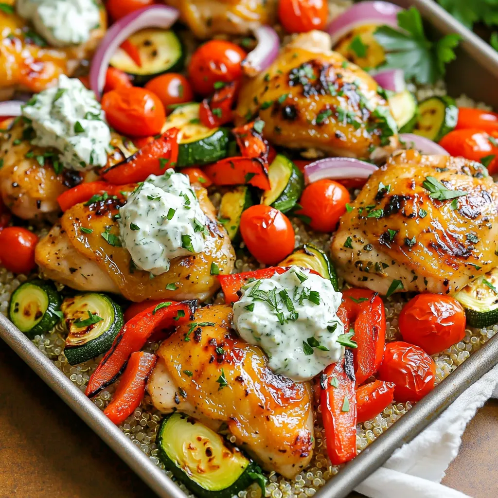 The main ingredients in this dish bring a lot of flavor. Chicken thighs are juicy and tender. They soak up all the marinade, making every bite tasty. The veggies add color and crunch. Zucchini and red bell pepper roast well, adding sweetness. Quinoa or brown rice gives a hearty base. You can use either grain for a filling meal.