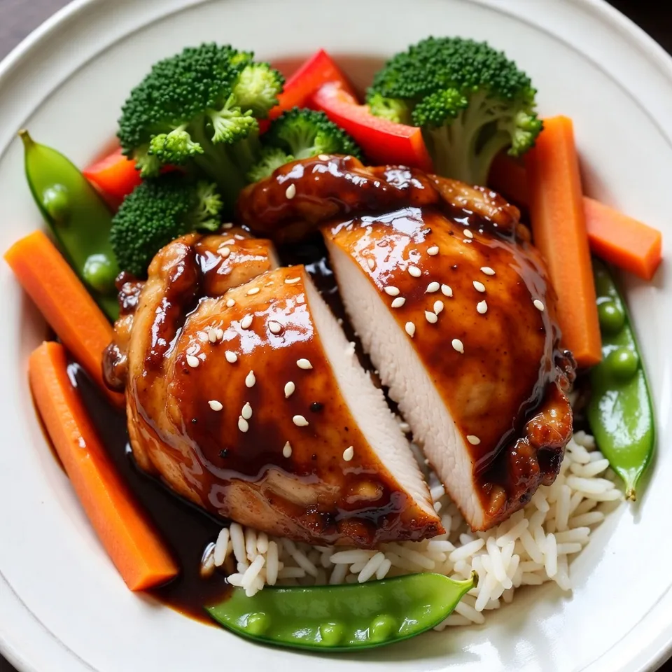Looking for a quick and healthy weeknight dinner? Try this delicious teriyaki chicken recipe featuring a colorful chicken and veggie medley! Perfectly roasted chicken and vegetables come together for a wholesome meal that's easy to prepare. Enjoy tender chicken thighs drizzled in teriyaki sauce alongside broccoli, bell peppers, carrots, and snap peas. Save this healthy teriyaki chicken recipe for busy nights! #TeriyakiChicken #HealthyDinner #EasyRecipes #SheetPanDinner