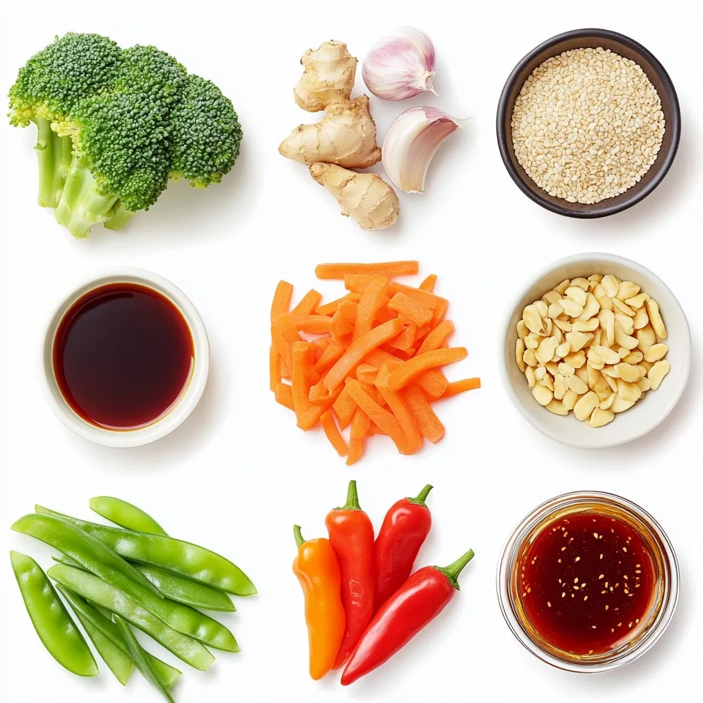 For the veggies, you want colors and crunch. Fresh broccoli, red bell pepper, sugar snap peas, and sliced carrots work great. They add texture and nutrition to your dish.