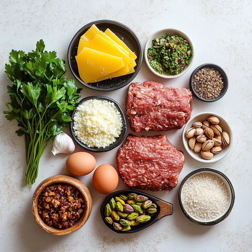 First, preheat your oven to 350°F (175°C). This ensures even cooking for your meatloaf. While the oven warms up, chop and measure your ingredients. You’ll need to finely chop a small onion and mince two garlic cloves. This step releases their flavors well. Don’t forget to chop your fresh parsley and pistachios too. Measure out your breadcrumbs and Pecorino Romano cheese. Gather everything in one place to make mixing easier.