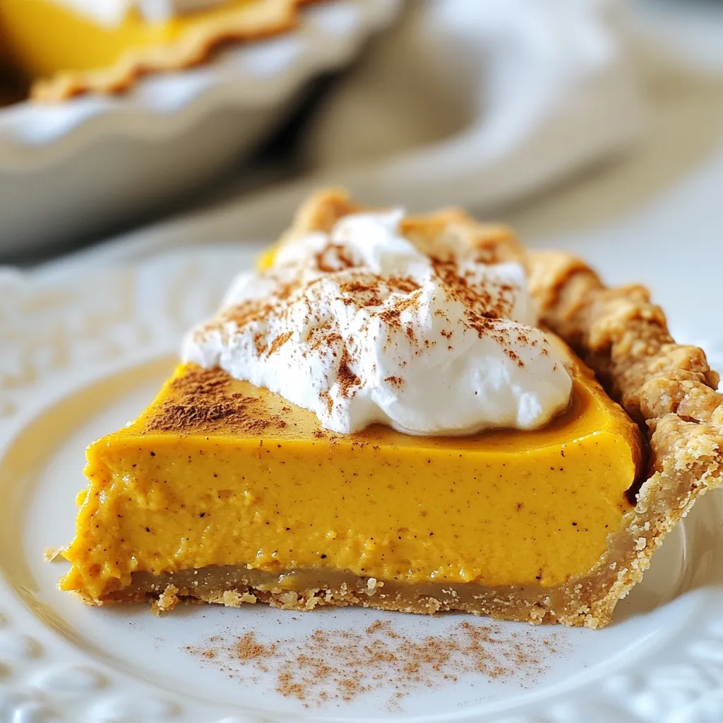 - 1 1/2 cups pumpkin puree - 1 cup silken tofu, drained - 1/2 cup maple syrup - 1/4 cup coconut milk - 1 teaspoon vanilla extract - 1 teaspoon ground cinnamon - 1/2 teaspoon ground nutmeg - 1/4 teaspoon ground ginger - 1/4 teaspoon salt - 1 prepared graham cracker crust To make this silken tofu pumpkin pie, you need simple, tasty ingredients. Pumpkin puree brings that lovely fall flavor. Silken tofu makes the pie creamy and smooth. Maple syrup adds sweetness, while coconut milk gives it a rich texture. Spices like cinnamon, nutmeg, and ginger enhance the pie's warmth. A touch of salt balances the sweetness perfectly. Finally, you’ll need a graham cracker crust. It adds a crunchy base that pairs well with the creamy filling. Gather these ingredients before you start. This will make cooking easy and fun! {{ingredient_image_1}} First, you need to preheat your oven to 350°F (175°C). This step is important to cook the pie evenly. Next, gather your tools: a blender or a food processor. These will help you achieve a smooth filling. In your blender, add 1 1/2 cups of pumpkin puree and 1 cup of drained silken tofu. This combination gives the pie its creamy texture. Then, pour in 1/2 cup of maple syrup, 1/4 cup of coconut milk, and 1 teaspoon of vanilla extract. Blend everything until it's smooth and creamy. Now it’s time to add flavor! Sprinkle in 1 teaspoon of ground cinnamon, 1/2 teaspoon of ground nutmeg, 1/4 teaspoon of ground ginger, and 1/4 teaspoon of salt. Blend again until the spices mix well with the filling. Once your filling is ready, take your prepared graham cracker crust. Pour the pumpkin filling into the crust and spread it evenly with a spatula. This ensures each slice has the same delicious taste. Now, place the pie in the preheated oven. Bake for 30 to 35 minutes. You will know it’s done when the edges look slightly puffed and the pie is set. After baking, remove the pie from the oven and let it cool at room temperature. Then, refrigerate it for at least 2 hours to let it firm up nicely. Enjoy your comforting and creamy silken tofu pumpkin pie! Silken tofu is key for a smooth pie. It gives a creamy feel. Unlike firm tofu, silken tofu blends easily. This means no lumps in your filling. To blend well, start with the wet ingredients. Add pumpkin puree and silken tofu first. Then, mix in maple syrup and coconut milk. Blend until smooth. If the mix is thick, add a splash of coconut milk. This helps create a lighter texture. Spices can transform your pie. I suggest starting with a classic mix of cinnamon, nutmeg, and ginger. Adjust the spices to your taste. Love warmth? Add more cinnamon. Want a kick? Boost the ginger. For serving, try whipped coconut cream. It adds sweetness and pairs well with the pumpkin. You can also drizzle extra maple syrup on each slice. This adds a nice touch. Garnishing makes your pie stand out. A sprinkle of cinnamon or nutmeg on each slice looks lovely. You can also add chopped nuts for crunch. For serving style, use dessert plates to create a nice setup. Each slice can be topped with a dollop of whipped cream. This makes it inviting for your guests. Pro Tips Use Fresh Pumpkin: For an even richer flavor, consider using fresh pumpkin instead of canned. Roast and puree your own pumpkin for the best results. Chill Thoroughly: To achieve the perfect texture, make sure to refrigerate the pie for at least 2 hours after it cools. This allows it to firm up nicely. Customize Spices: Feel free to adjust the spices to your liking. Adding a pinch of allspice or cloves can give the pie a unique twist. Graham Cracker Crust Alternatives: If you're feeling adventurous, try using a different crust such as a nut-based crust or a gluten-free option for a different flavor profile. {{image_2}} For a vegan twist, I love to use coconut whipped cream on top. This adds a light and creamy texture. To make it, just whip chilled coconut cream until fluffy. You can also play with sweeteners. Instead of maple syrup, try agave or date syrup. Both options add unique flavors. If you need a gluten-free crust, look for gluten-free graham cracker options. Many brands offer this choice. You can also make your own crust with ground nuts or oats. Just combine them with a bit of melted coconut oil and press it into a pie dish. Want to mix things up? Add chocolate to your filling for a rich taste. Just melt some dark chocolate and blend it in. You can also try adding spices like cardamom or cloves for a warm kick. Seasonal fruit toppings, like fresh cranberries or pomegranate seeds, make it festive. They add color and a burst of flavor. To keep your silken tofu pumpkin pie fresh, store it in the fridge. Place the pie in an airtight container. If you don’t have one, cover it tightly with plastic wrap. This keeps the pie moist and avoids odors from other foods. In the fridge, your pie lasts about 4 to 5 days. Make sure to check for any changes in smell or texture before serving. If you want to keep your pie longer, freezing is a good option. Wrap the pie well in plastic wrap and then in foil. This helps prevent freezer burn. It can last up to 3 months in the freezer. When ready to eat, thaw it in the fridge overnight before serving. You cannot swap regular tofu for silken tofu in this pie. Silken tofu is smooth and creamy. It blends well into a filling. Regular tofu has a firmer texture. This will make the pie dense and less creamy. For the best flavor and texture, stick with silken tofu. This pie is already dairy-free! You can use coconut milk instead of cream. Maple syrup adds natural sweetness, so skip the sugar. If you want a whipped topping, use coconut cream. It gives a nice, creamy finish without dairy. This way, you keep the pie light and tasty. Yes, you can use fresh pumpkin! Start with a small pumpkin, often called sugar pumpkin. Roast it until soft, then scoop the flesh out. Blend it until smooth to make your own puree. This gives a fresh taste. Just be sure to measure out 1 ½